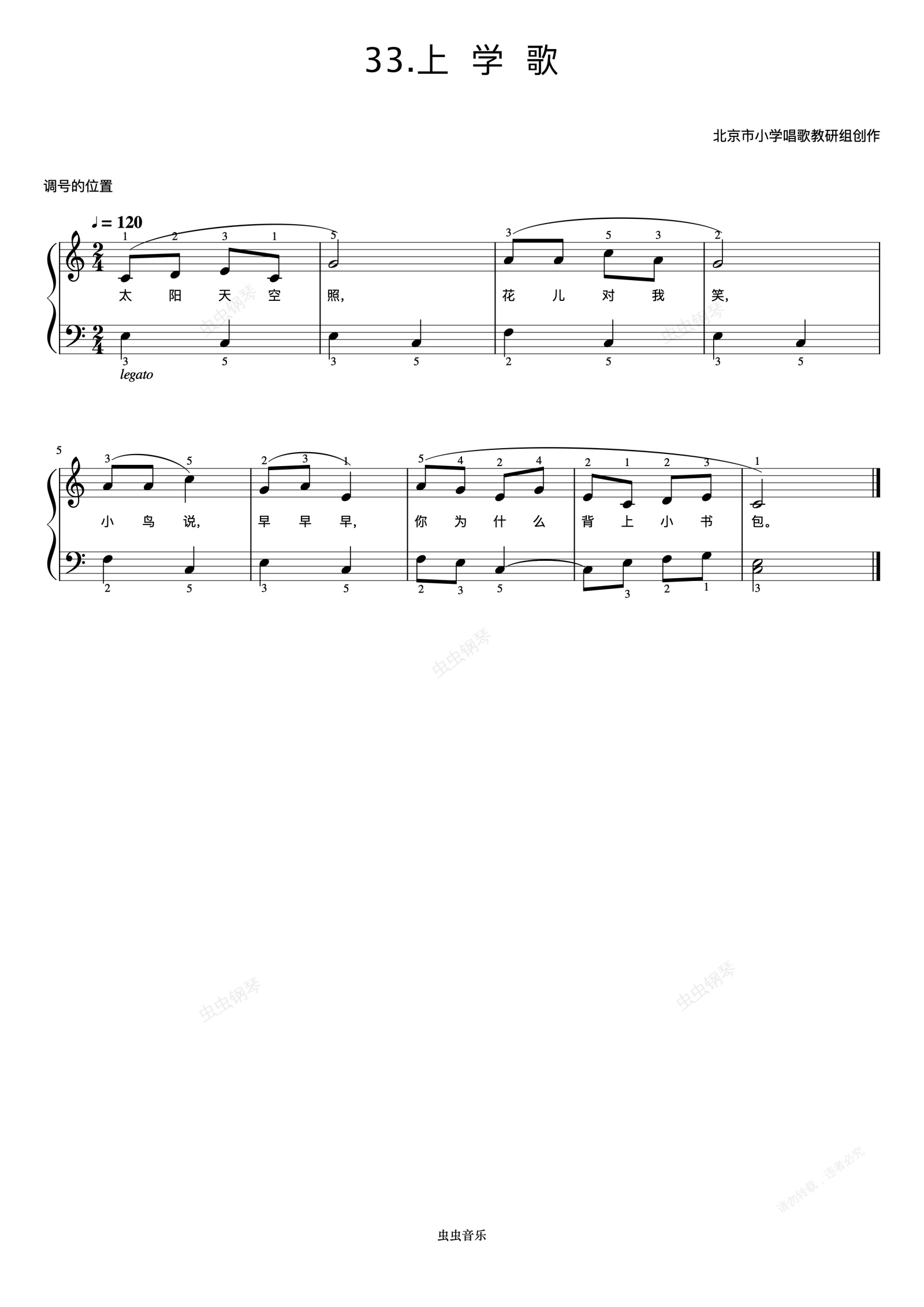 钢琴谱:上学歌《弹儿歌学钢琴》