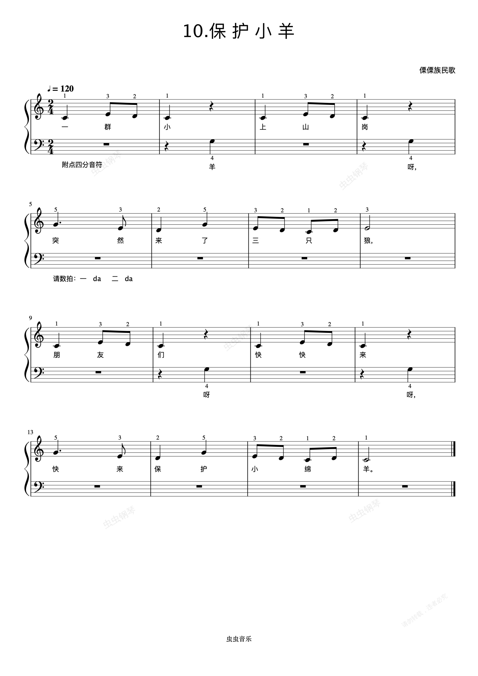 钢琴谱:保护小羊《弹儿歌学钢琴》