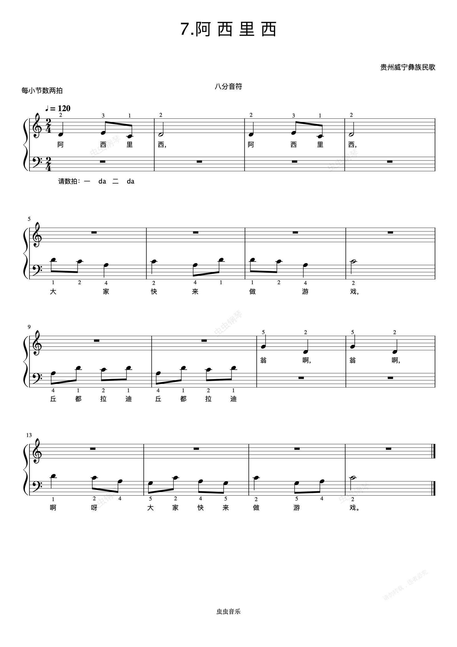钢琴谱:阿西里西《弹儿歌学钢琴》