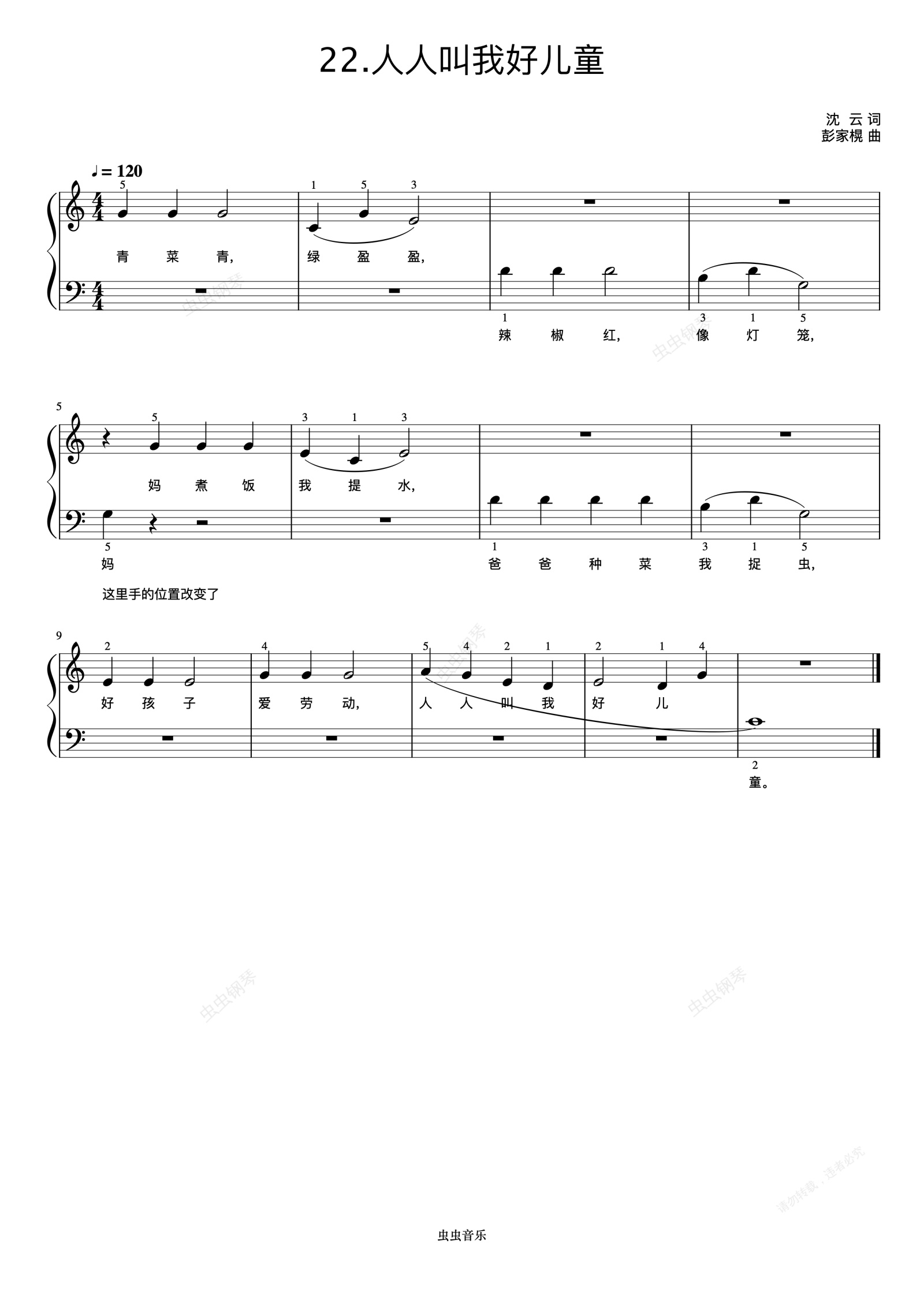 钢琴谱:人人叫我好儿童《弹儿歌学钢琴》
