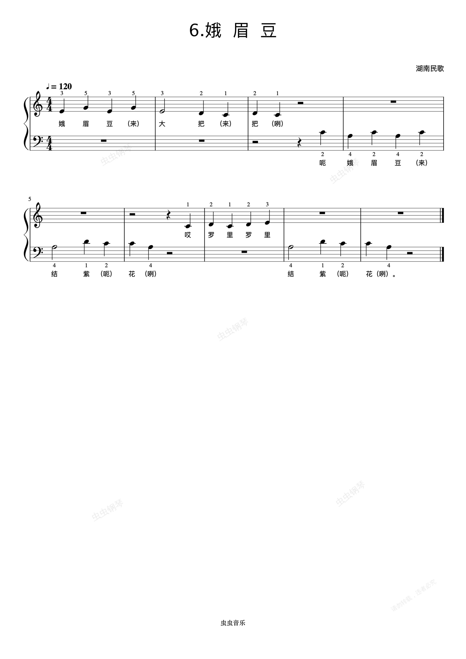 钢琴谱:娥眉豆《弹儿歌学钢琴》