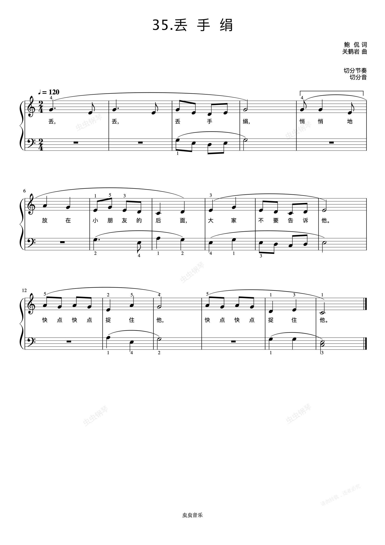 钢琴谱:丢手绢《弹儿歌学钢琴》