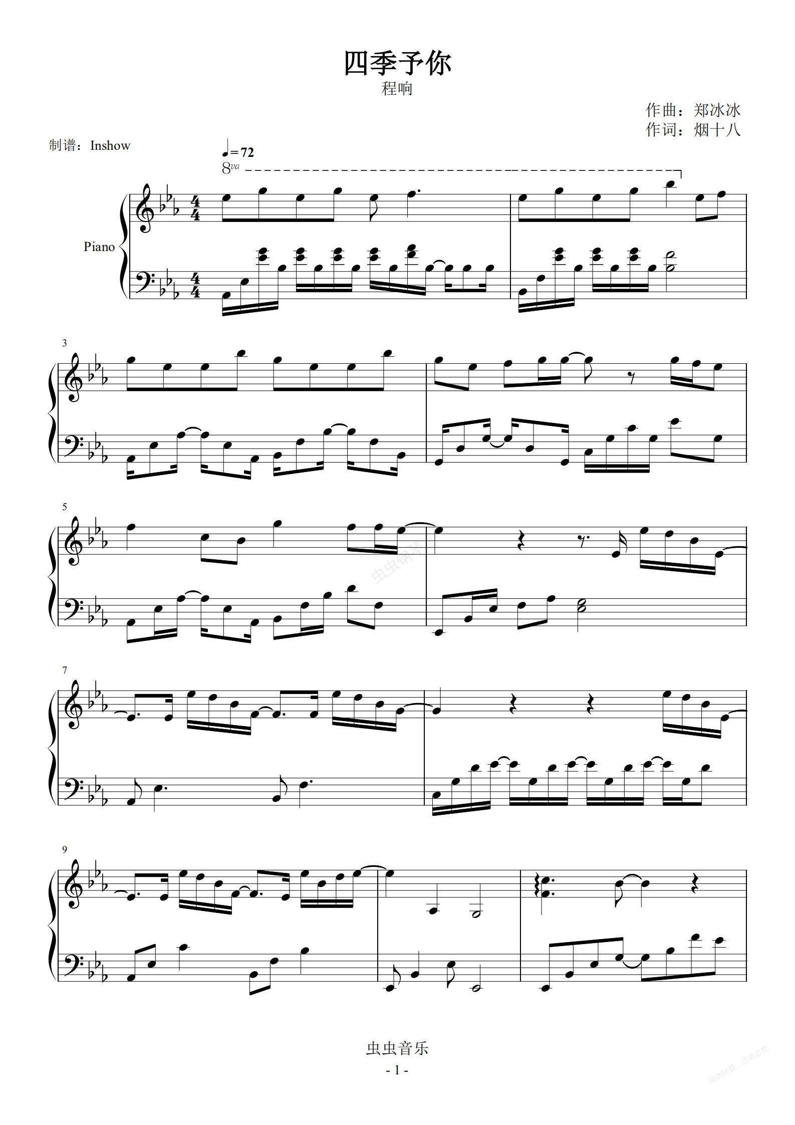 钢琴谱:四季予你【独奏】- 程响 - (#抖音)