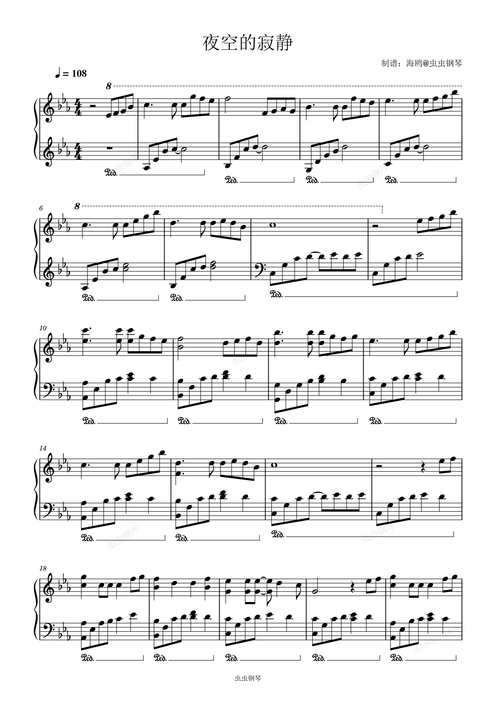 钢琴谱:夜空的寂静(完整乐谱)