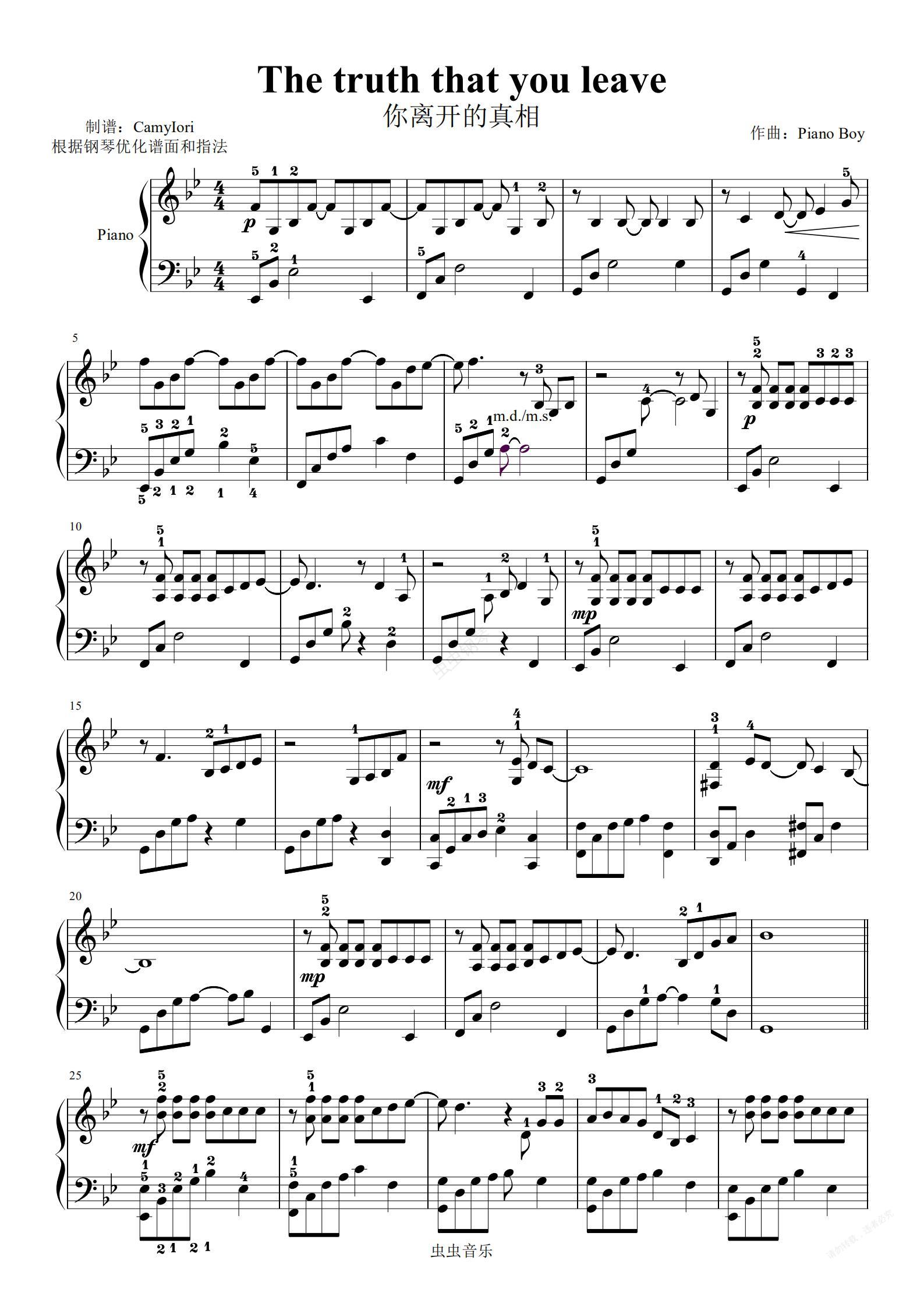 钢琴谱:The Truth that you leave-带指法