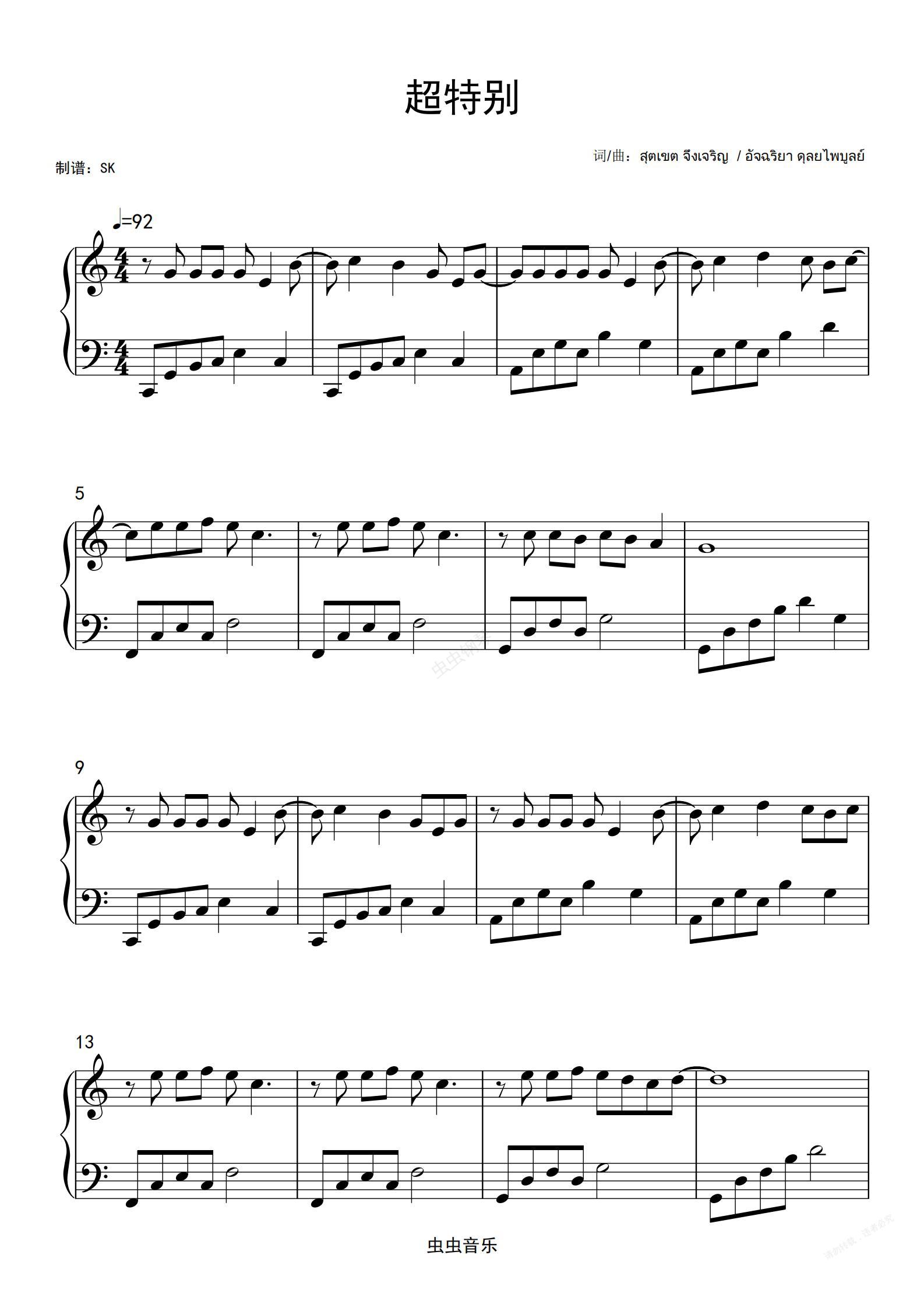 钢琴谱:十分特别(泰剧《一心一译 / 以你的心诠释我的爱》OST)C调抒情简单版