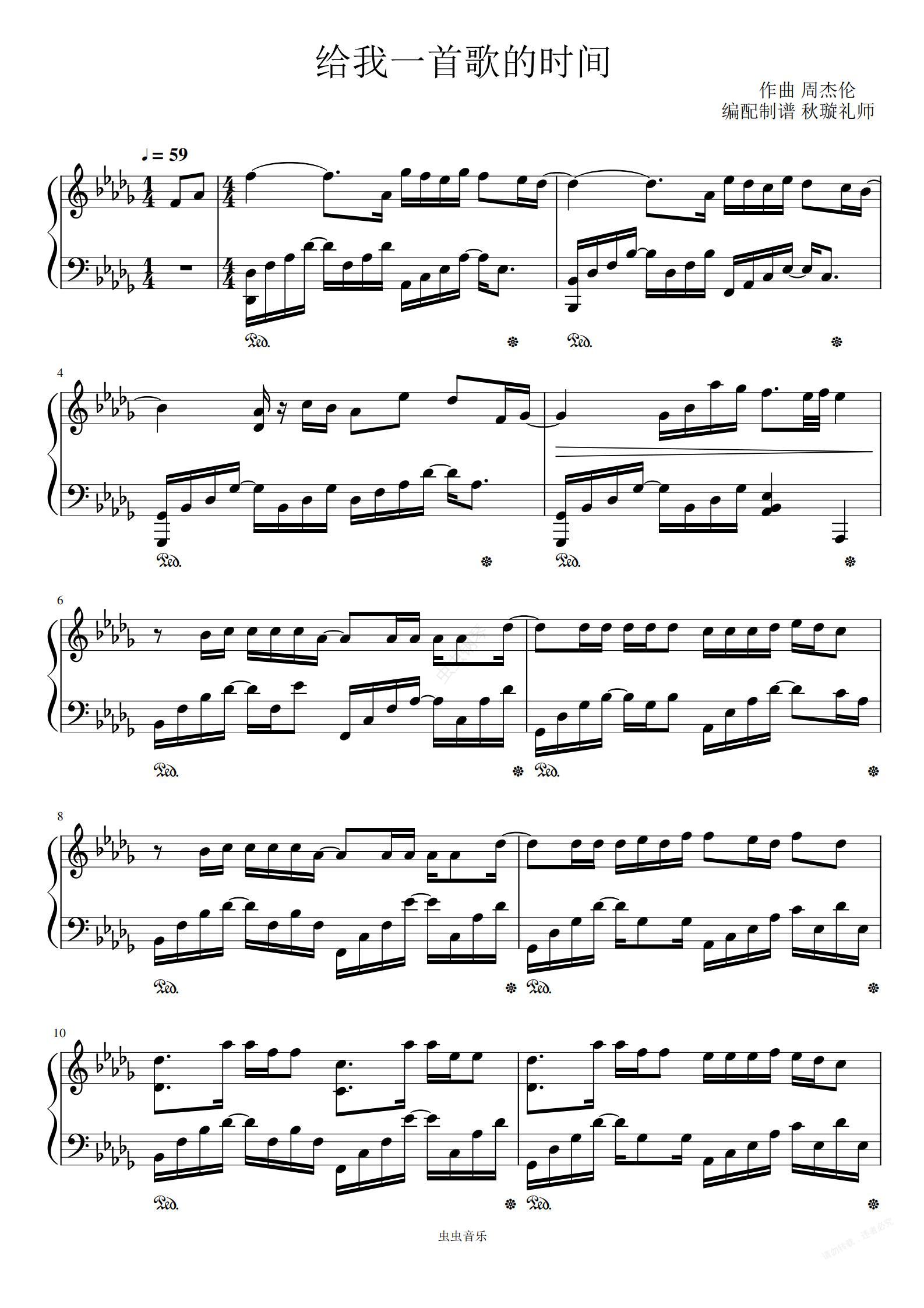 钢琴谱:给我一首歌的时间—周杰伦[杰迷精通级]