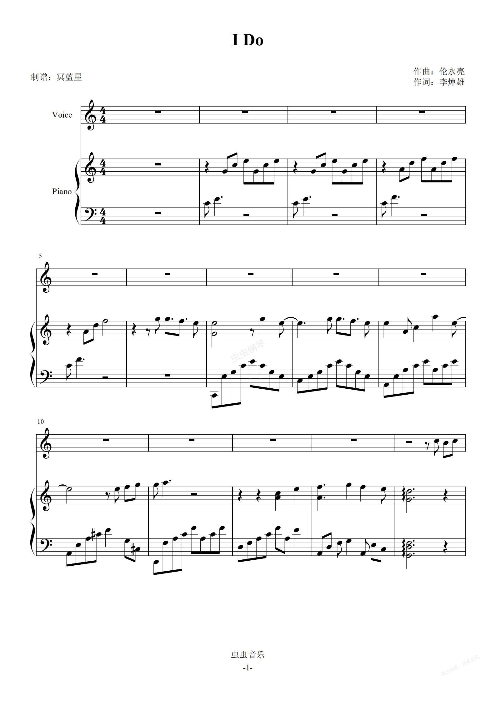 钢琴谱:I DO-莫文蔚-伴奏谱