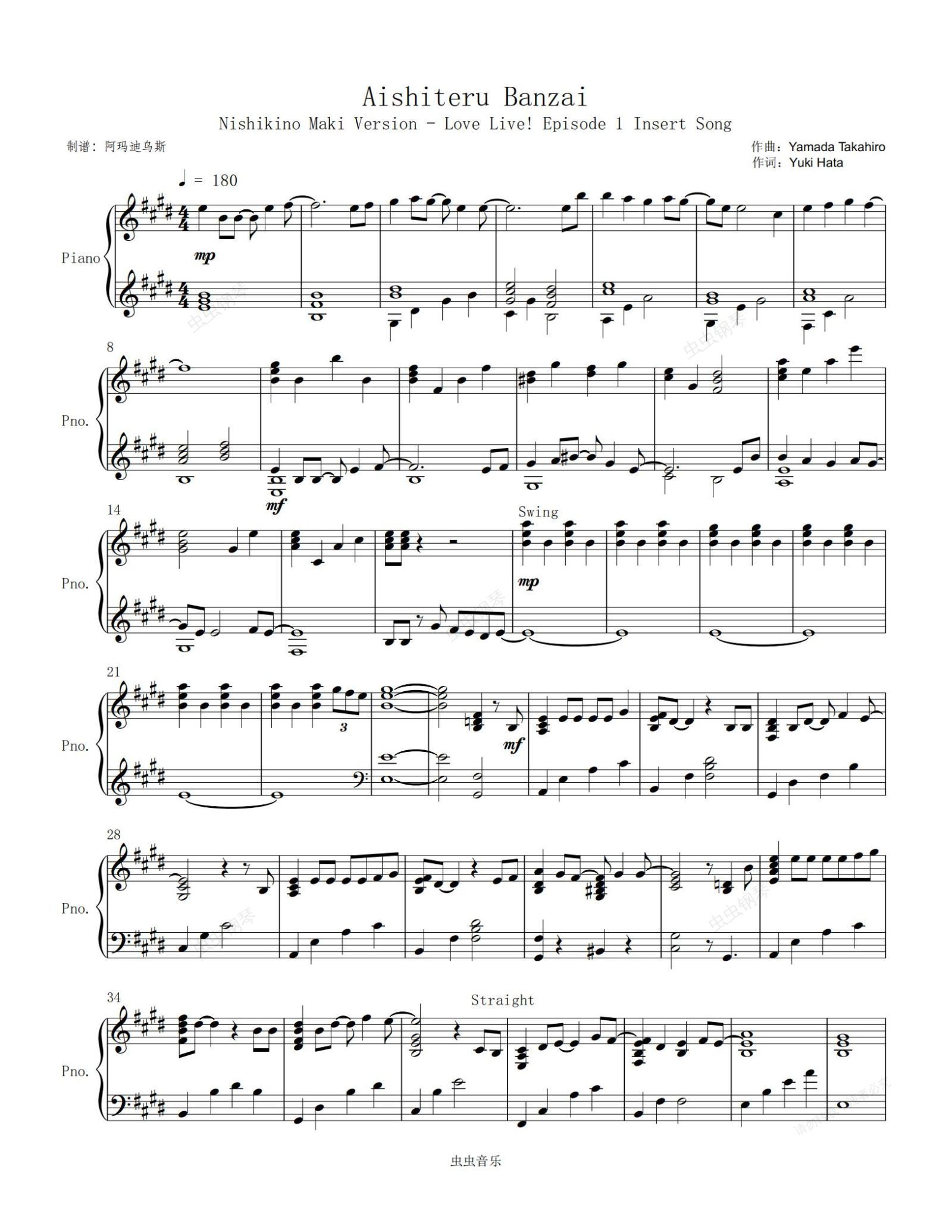 钢琴谱:Love Live! < Aishiteru Banzai > 原调高还原完整版本