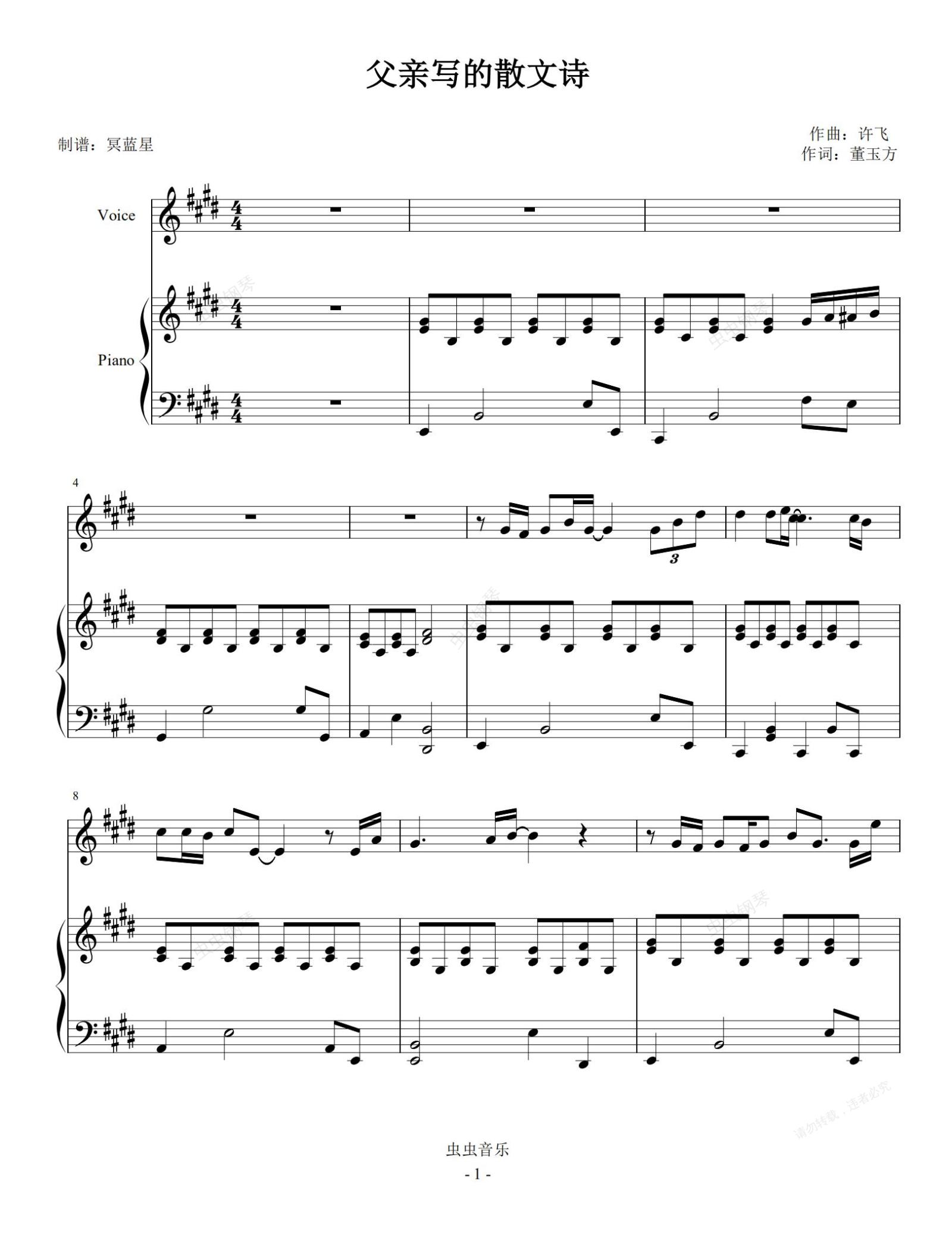 钢琴谱:父亲写的散文诗-许飞-伴奏谱