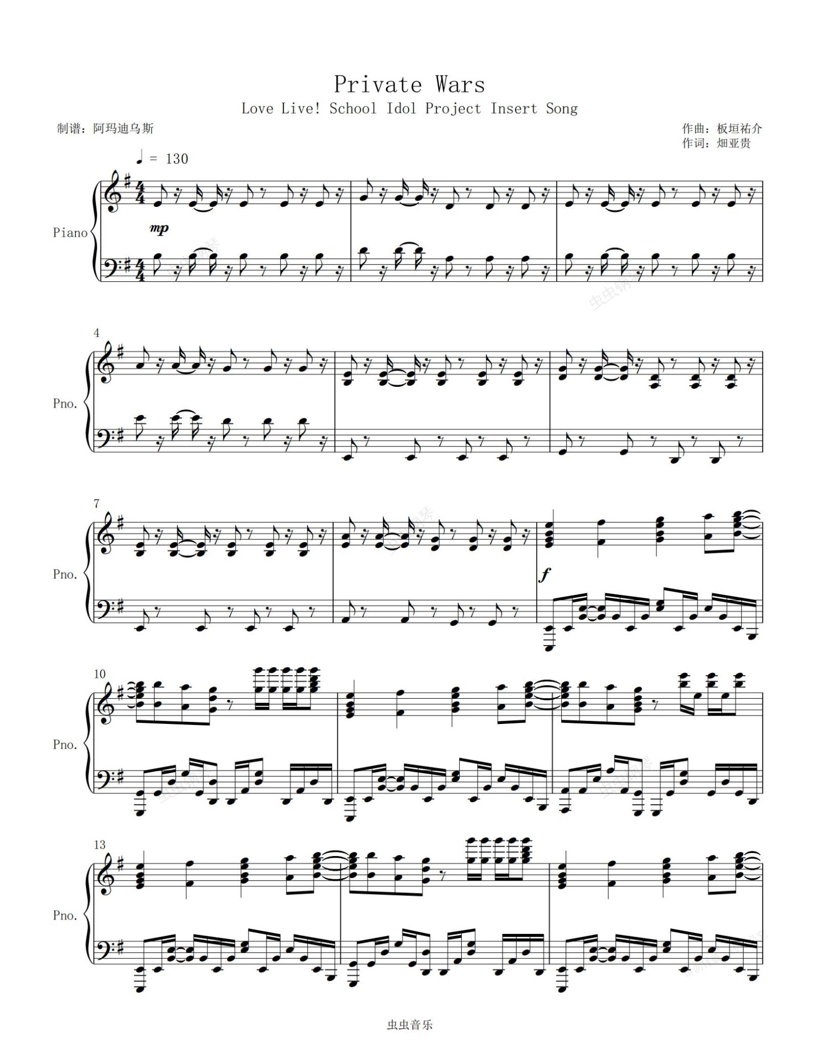 钢琴谱:Love Live! < Private Wars > 原调高还原完整版本