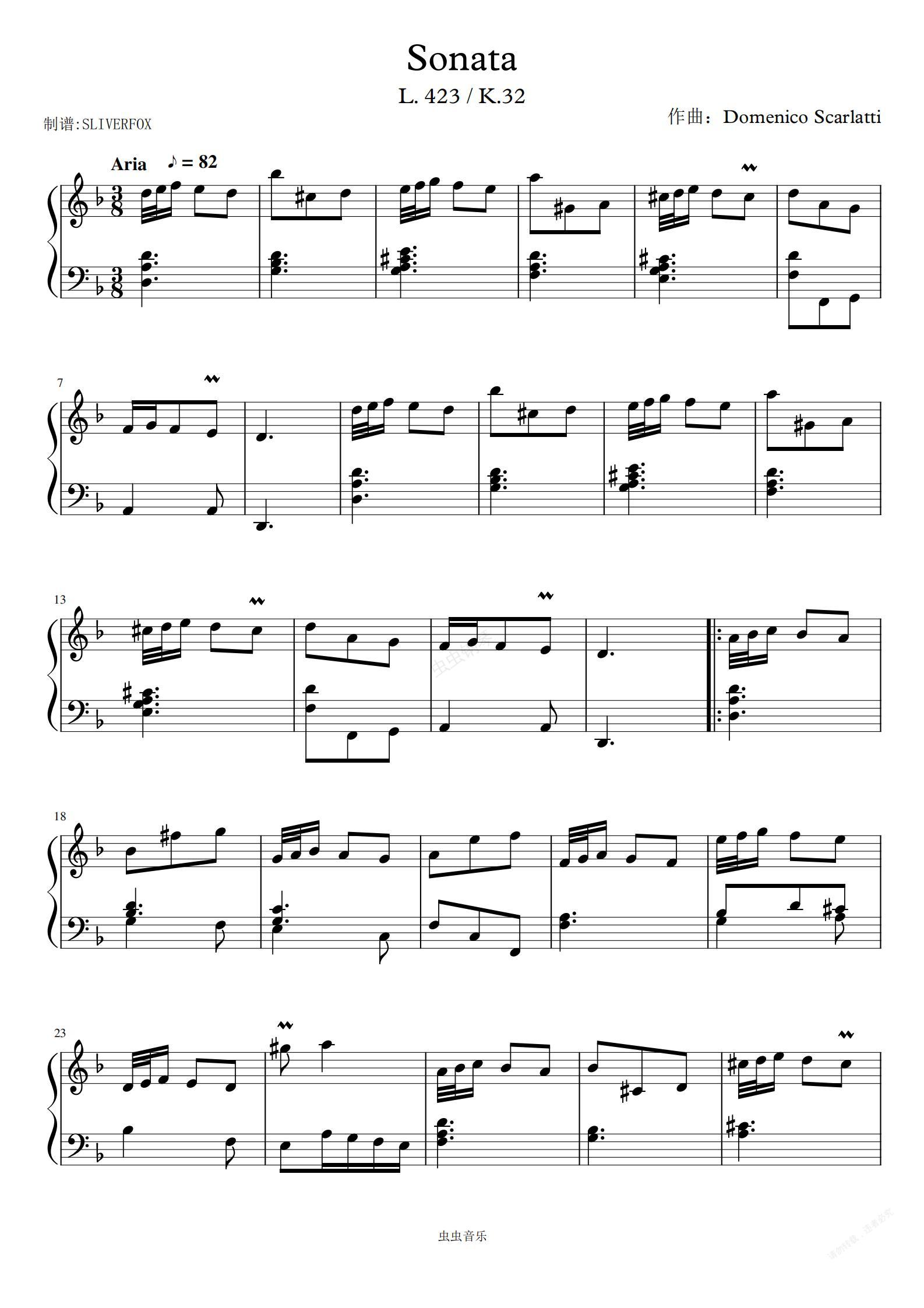 钢琴谱:斯卡拉蒂奏鸣曲L423 K32 SonataK.32 L423
