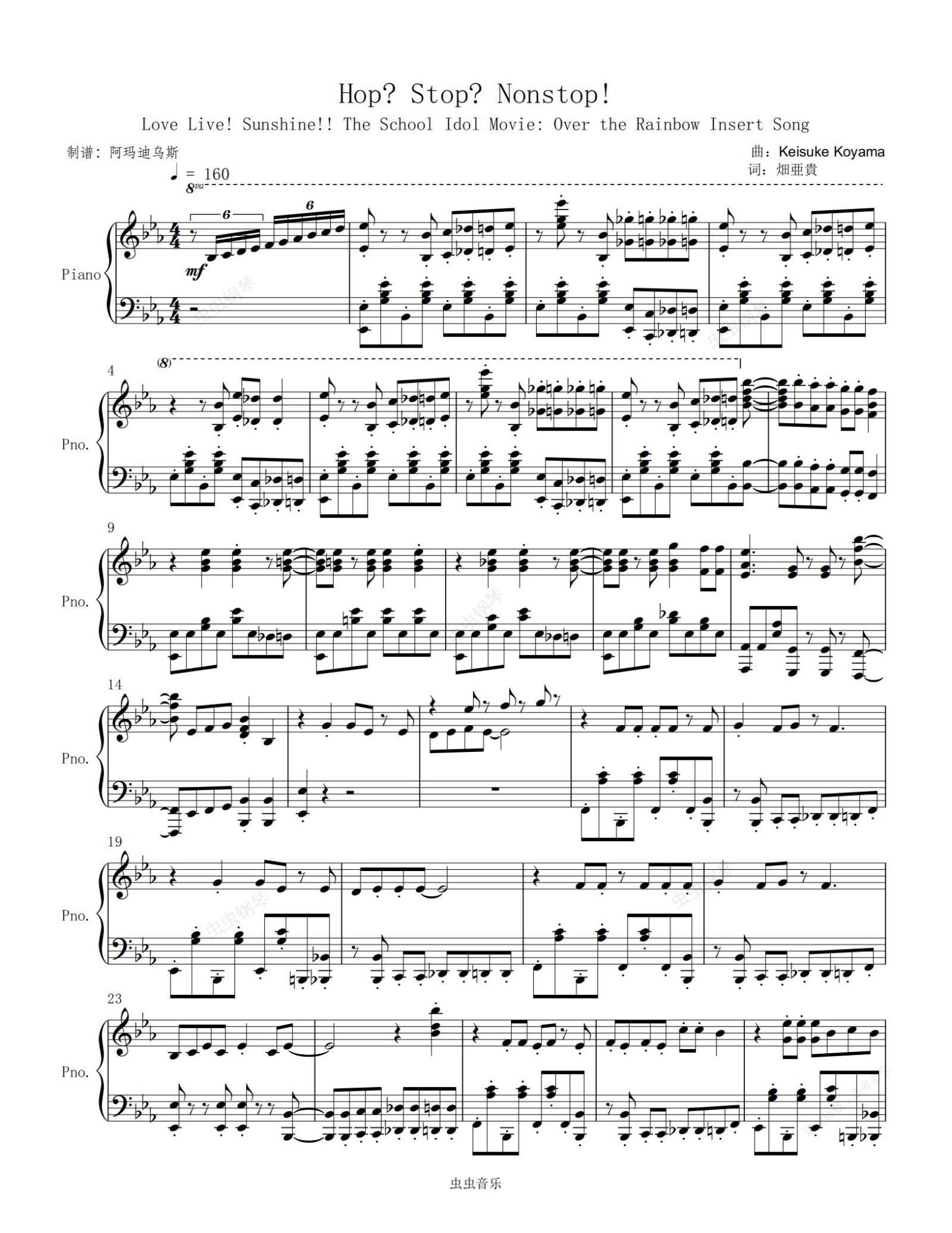 钢琴谱:Love Live! < Hop Stop Nonstop! > 原调高还原完整版本