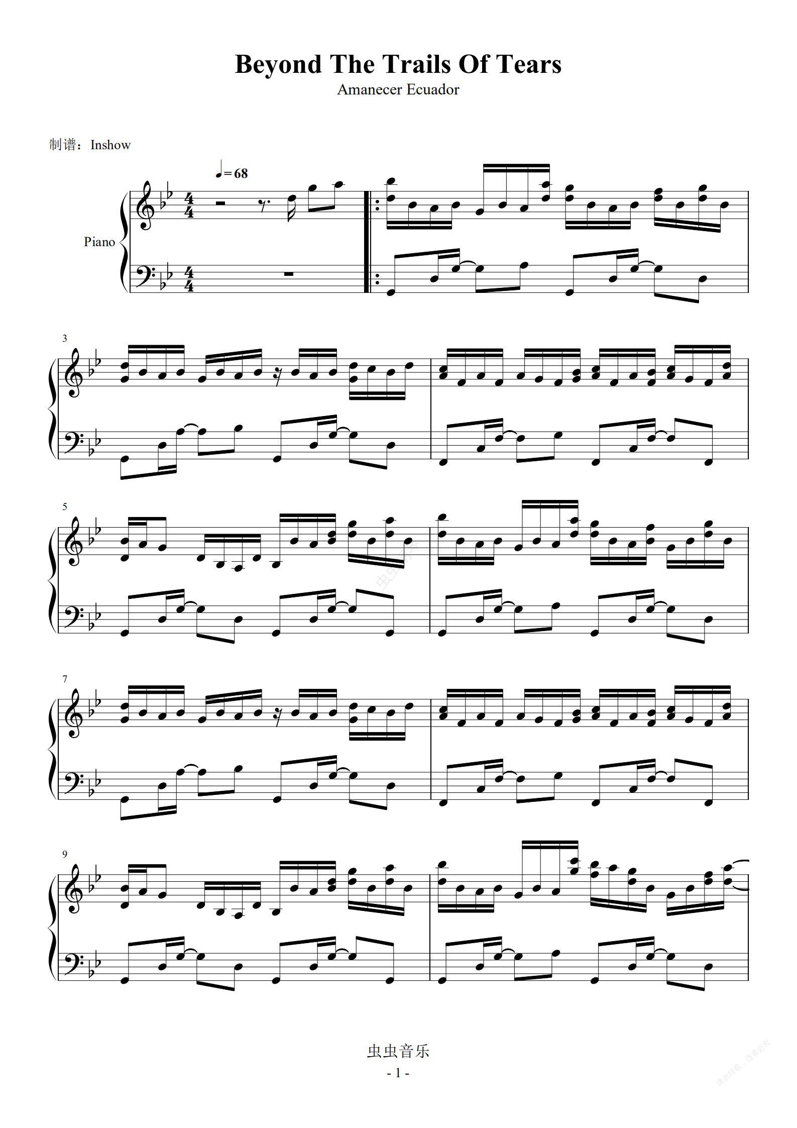 钢琴谱:Beyond The Trails Of Tears【独奏】