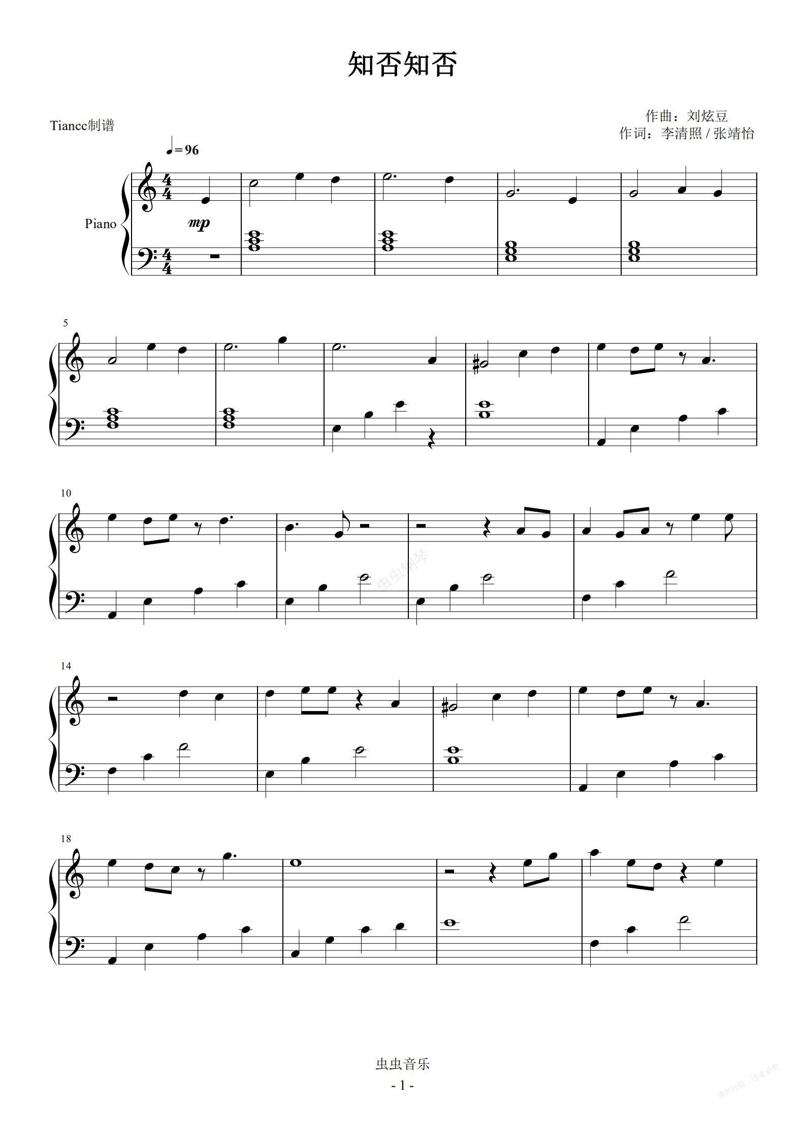 钢琴谱:《知否知否》胡夏,C调拜厄难度,好弹好听