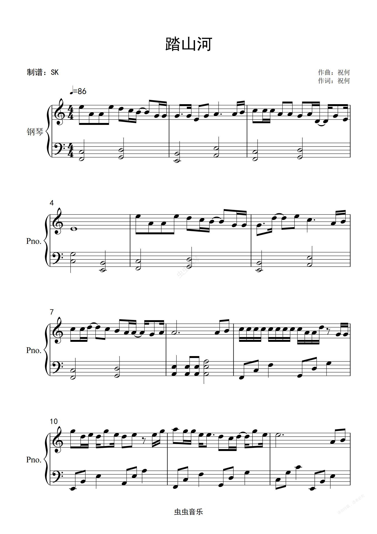 钢琴谱:是七叔呢《踏山河》C调简单版