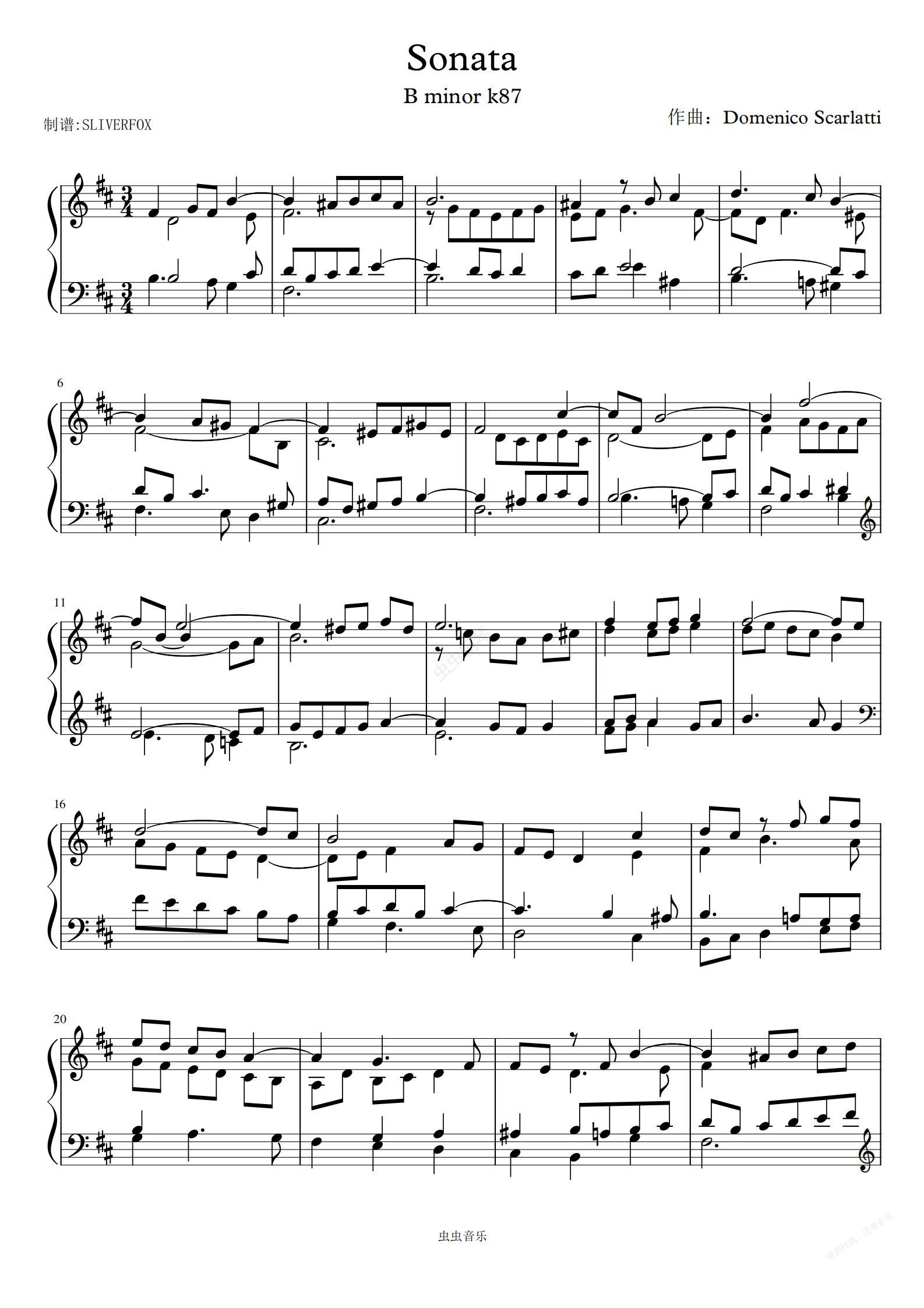 钢琴谱:斯卡拉蒂奏鸣曲K87 Sonata Scarlatti