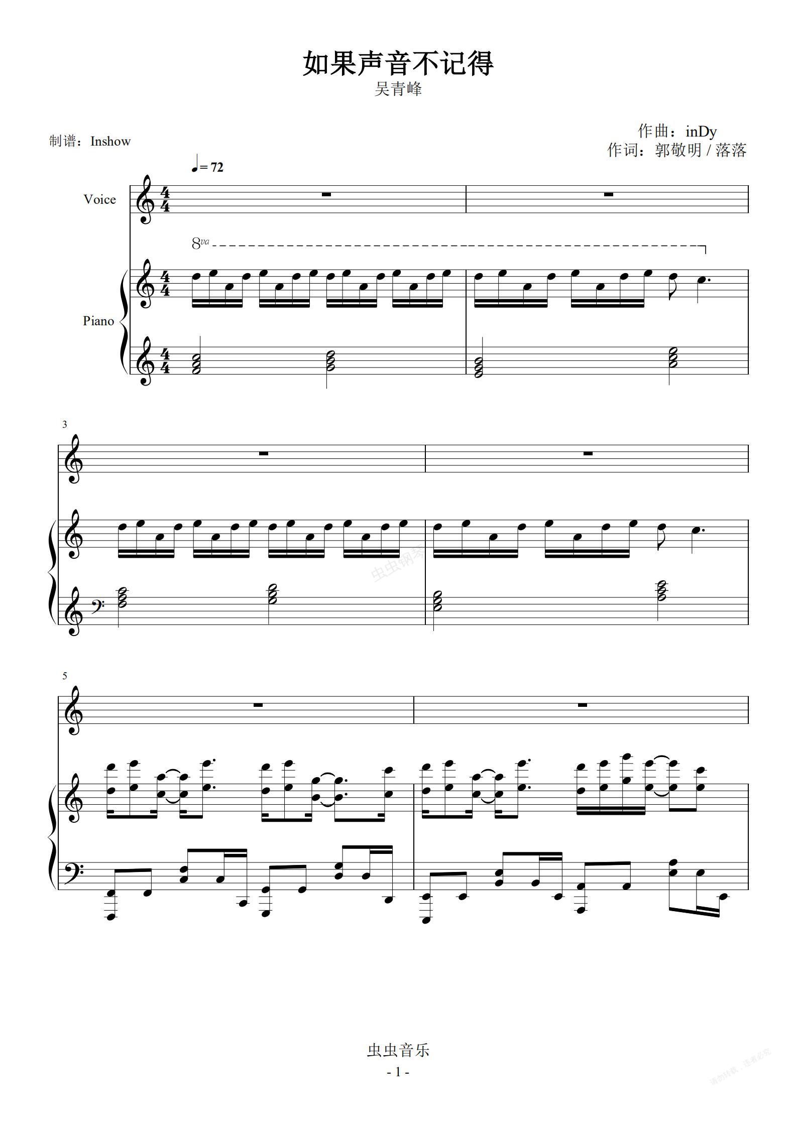 钢琴谱:如果声音不记得【弹唱】- 吴青峰 -
