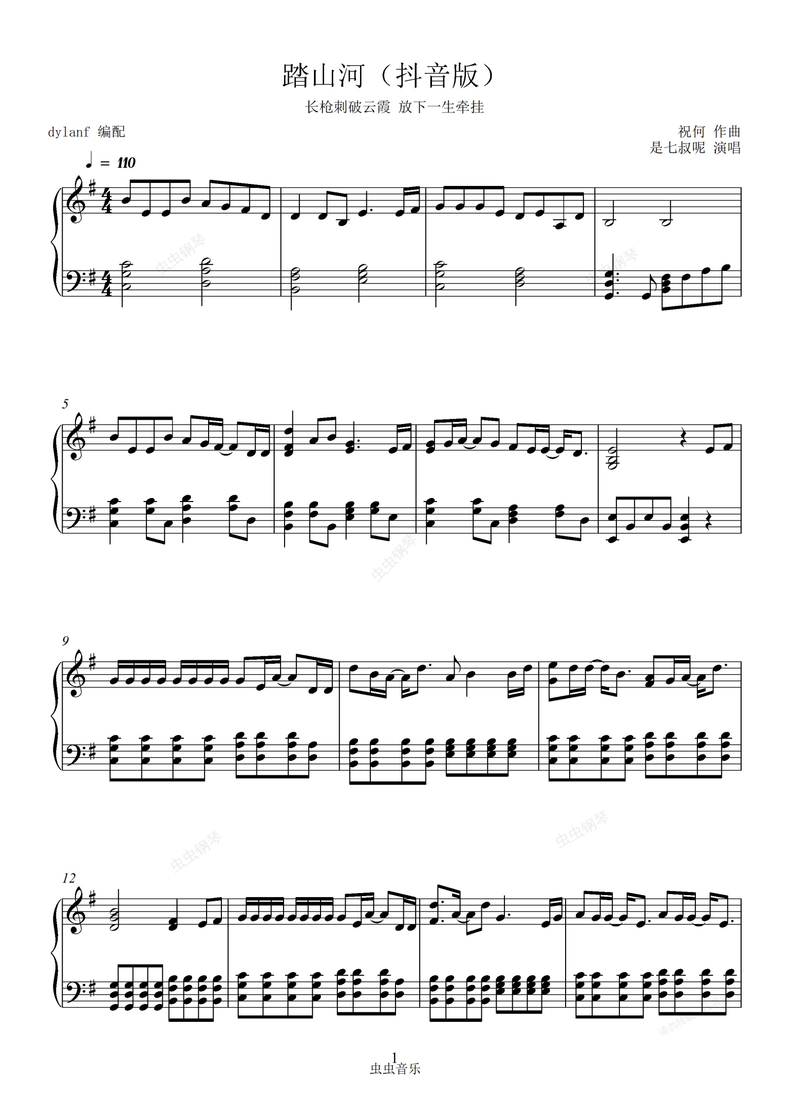 钢琴谱:踏山河(抖音版)好听还原 是七叔呢