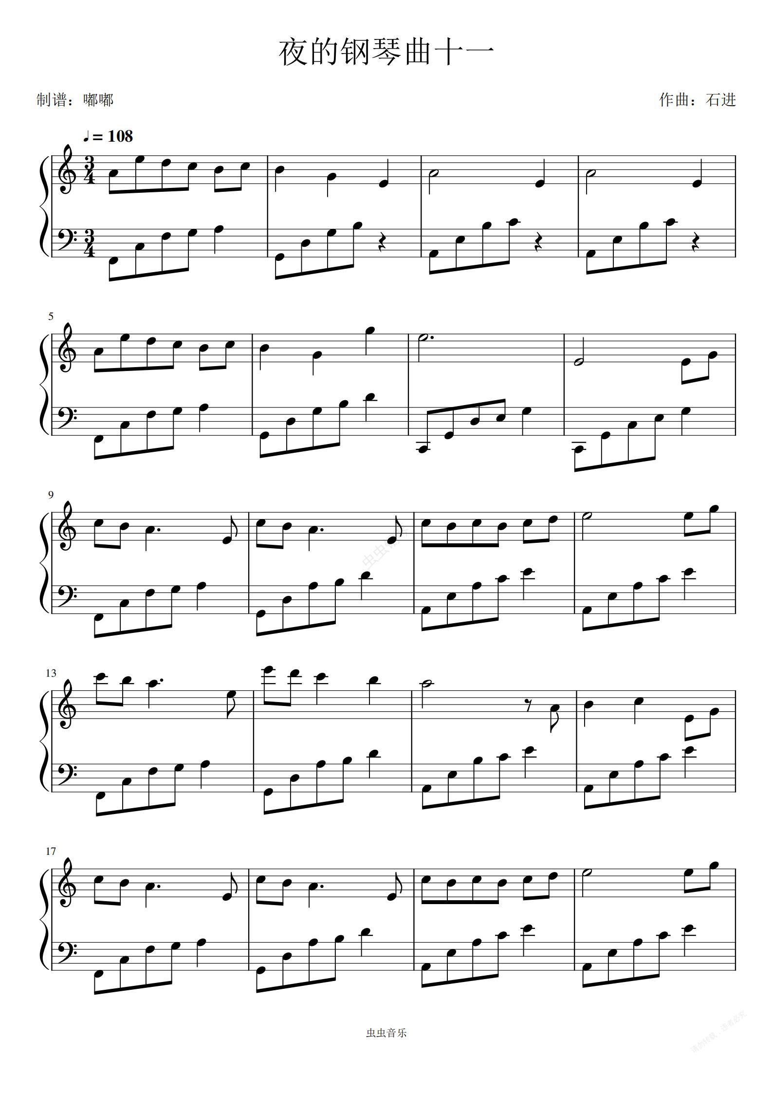 钢琴谱:夜的钢琴曲十一(完美C调版)