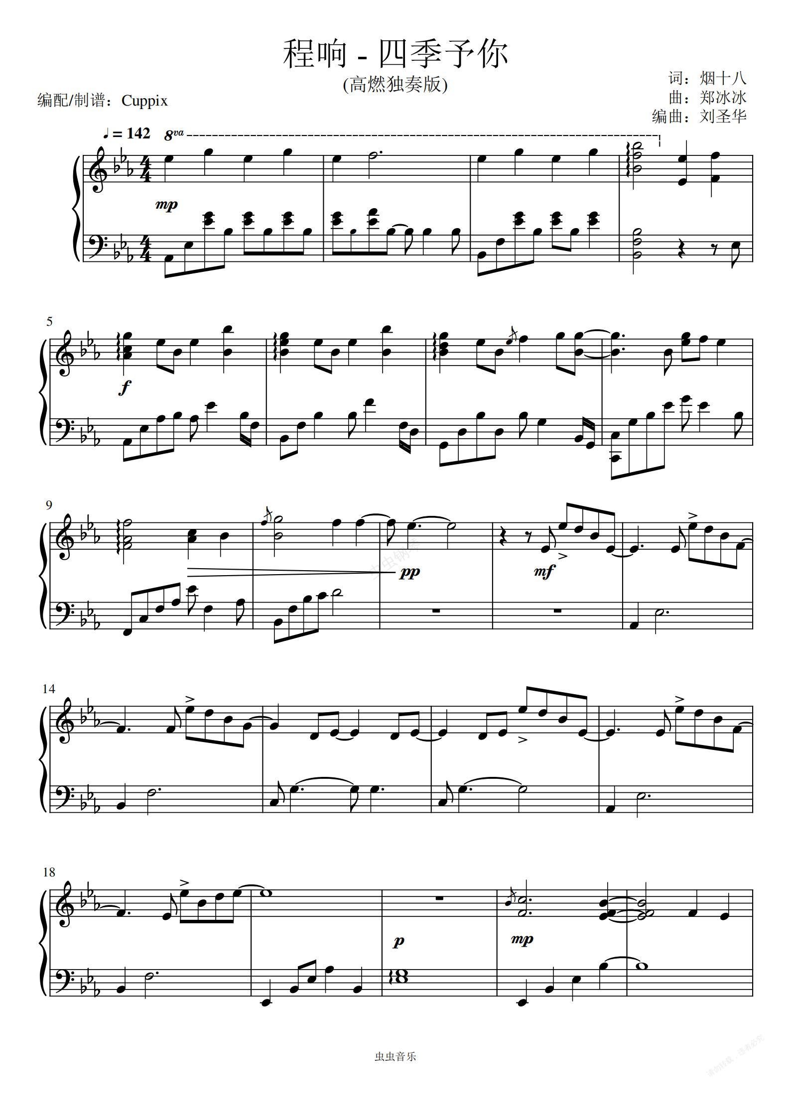 钢琴谱:《四季予你》高燃独奏版-Cuppix改编