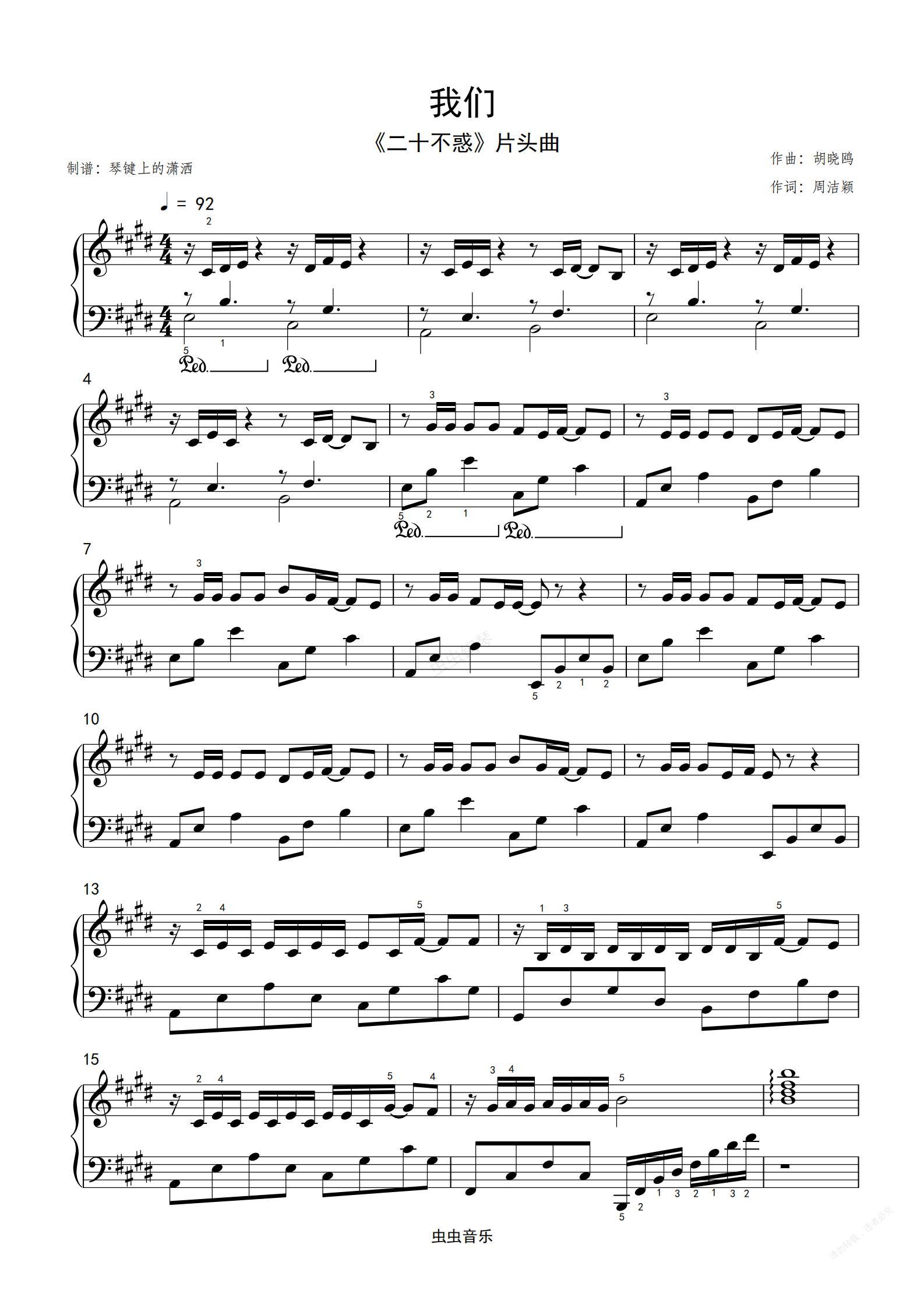 钢琴谱:《我们》-二十不惑片头曲-E大调