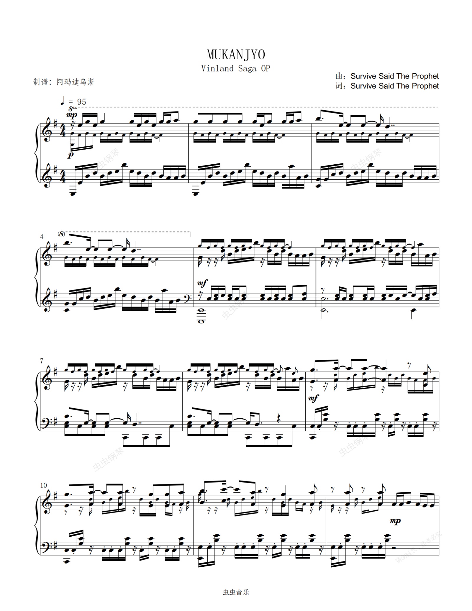 钢琴谱:冰海战记 OP < MUKANJYO > 原调高还原完整版本