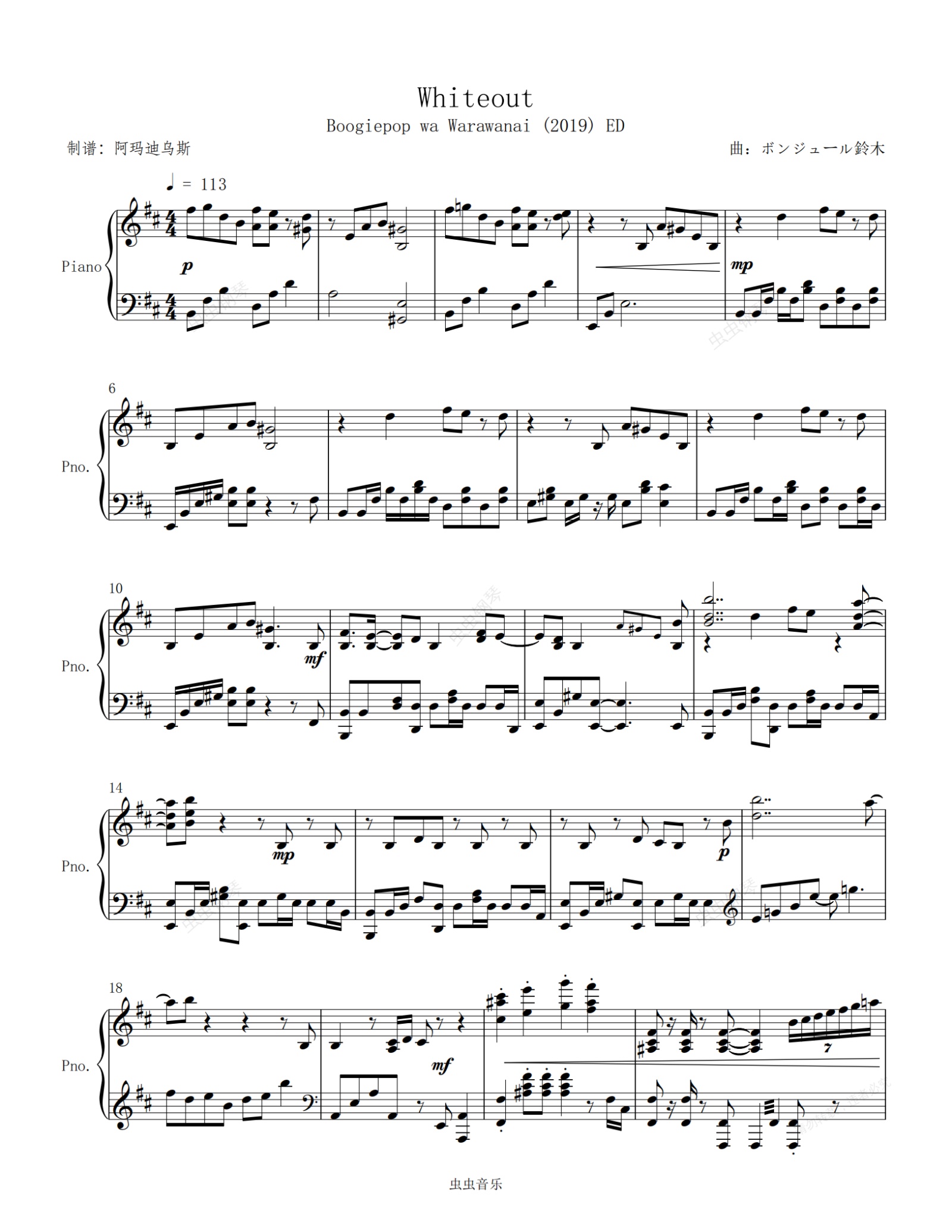 钢琴谱:不吉波普不笑 ED < Whiteout > 原调高还原完整版本