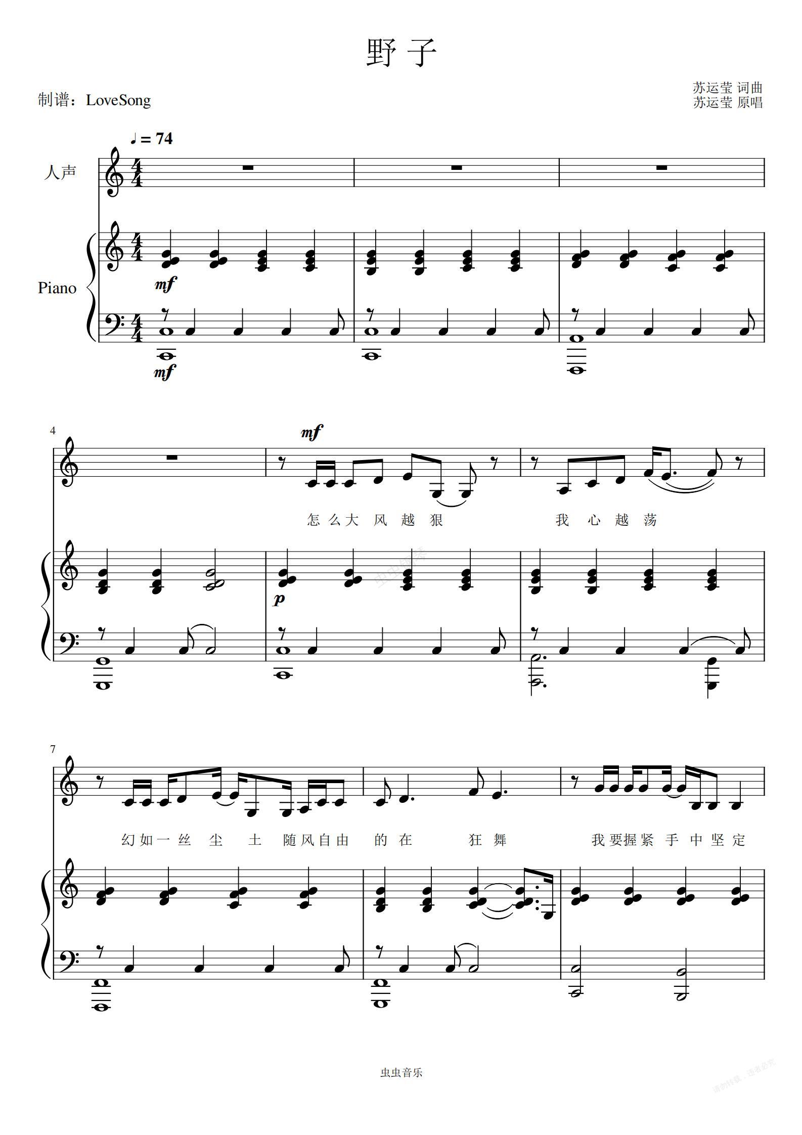 钢琴谱:野子 钢琴弹唱版 伴奏谱
