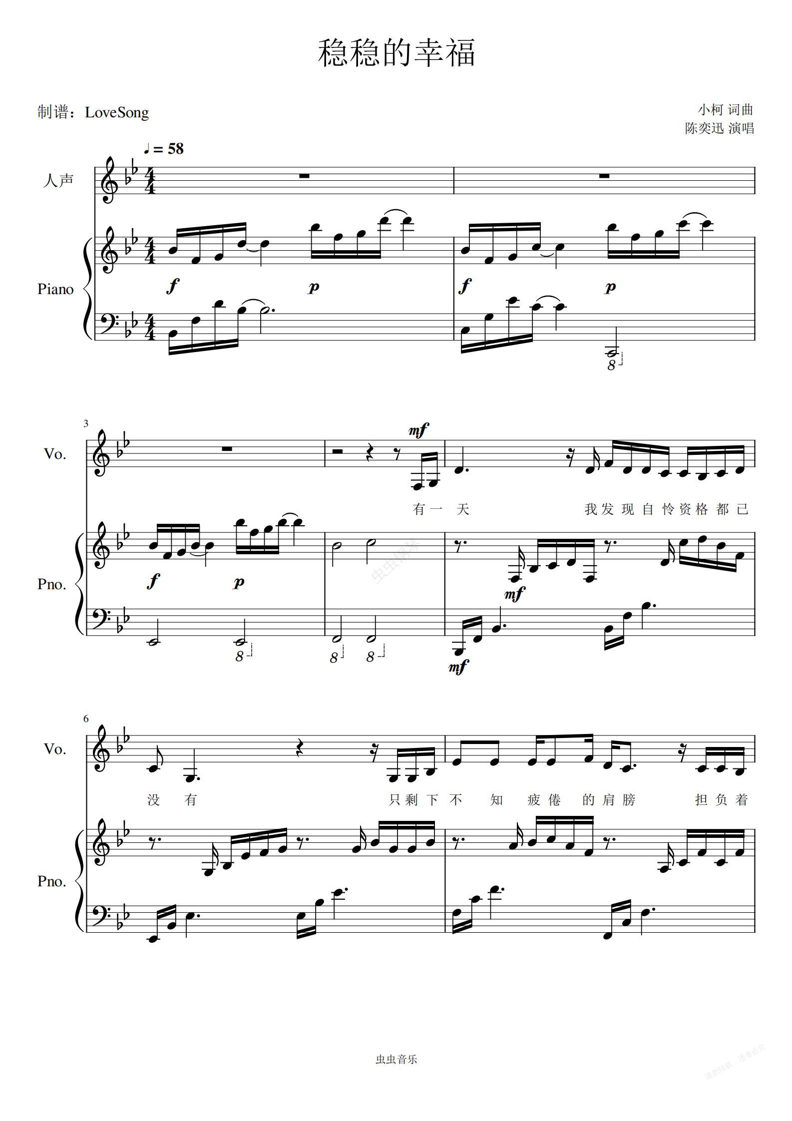 钢琴谱:陈奕迅 稳稳的幸福 弹唱版伴奏谱