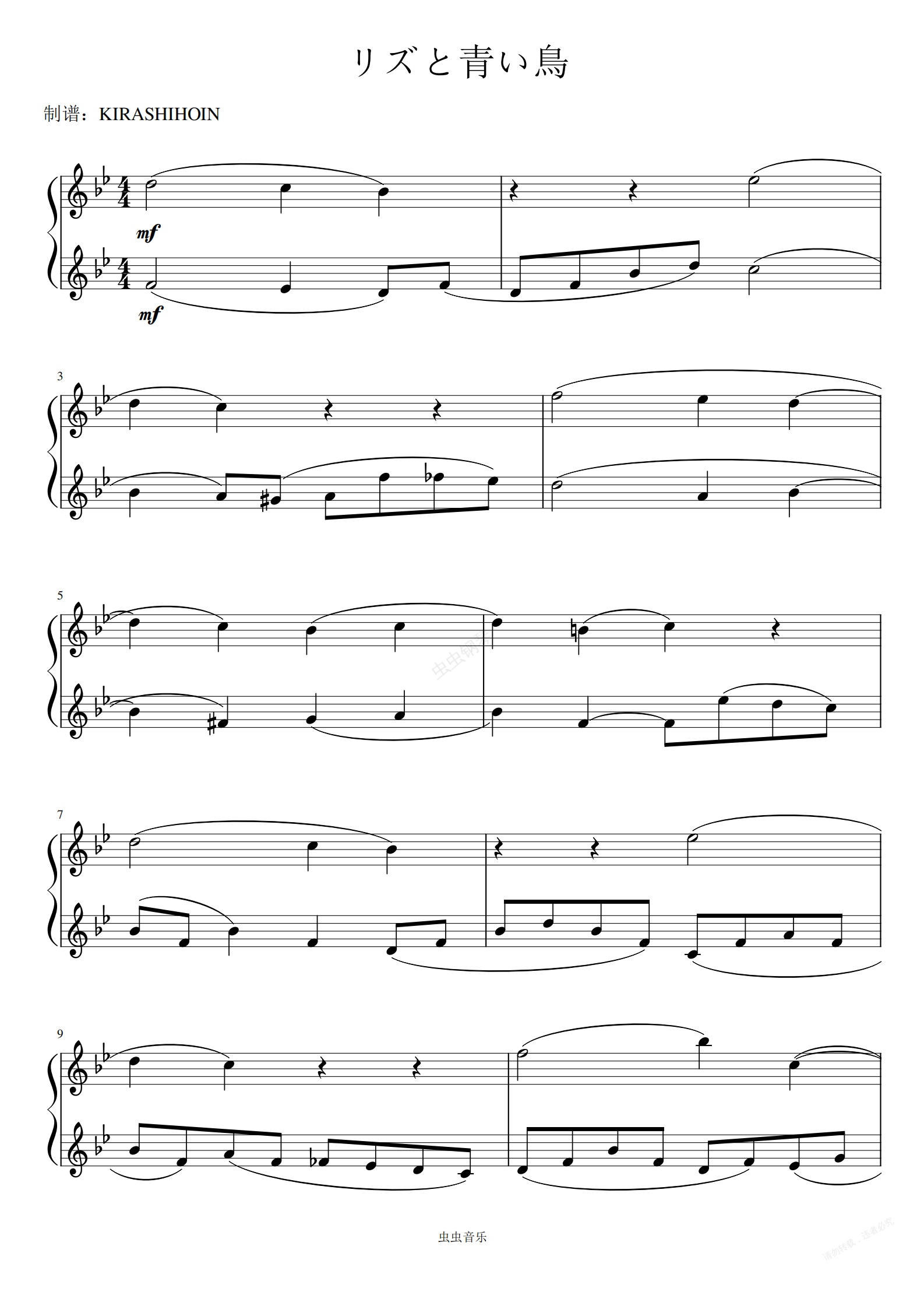 钢琴谱:利兹与青鸟/リズと青い鳥(《利兹与青鸟》插曲)