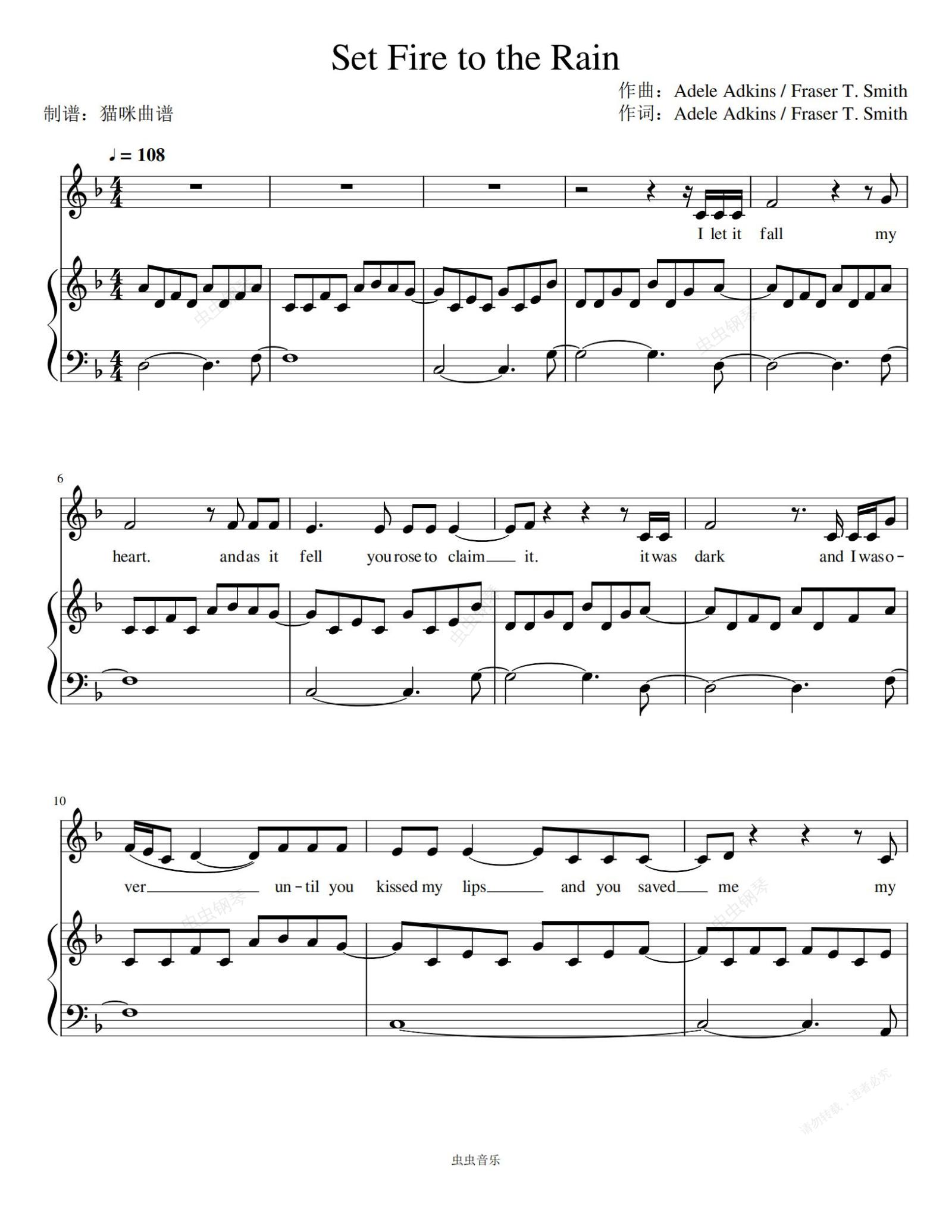 钢琴谱:Set Fire to the Rain - Adele (阿黛尔)