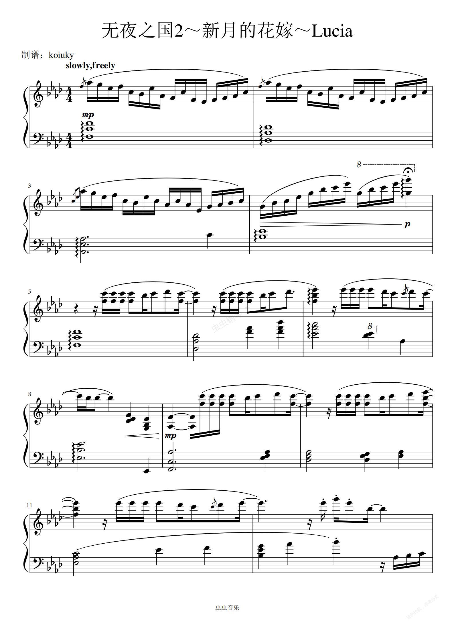 钢琴谱:无夜之国2~新月的花嫁~Lucia 改编钢琴独奏谱
