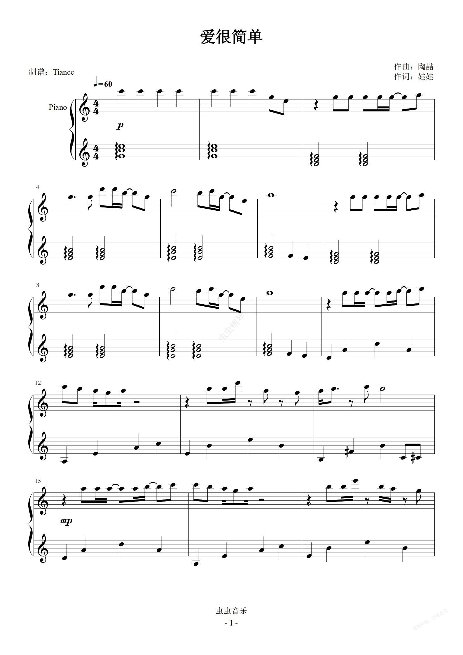 钢琴谱:《爱很简单》陶喆,599++难度,适合手大的同学