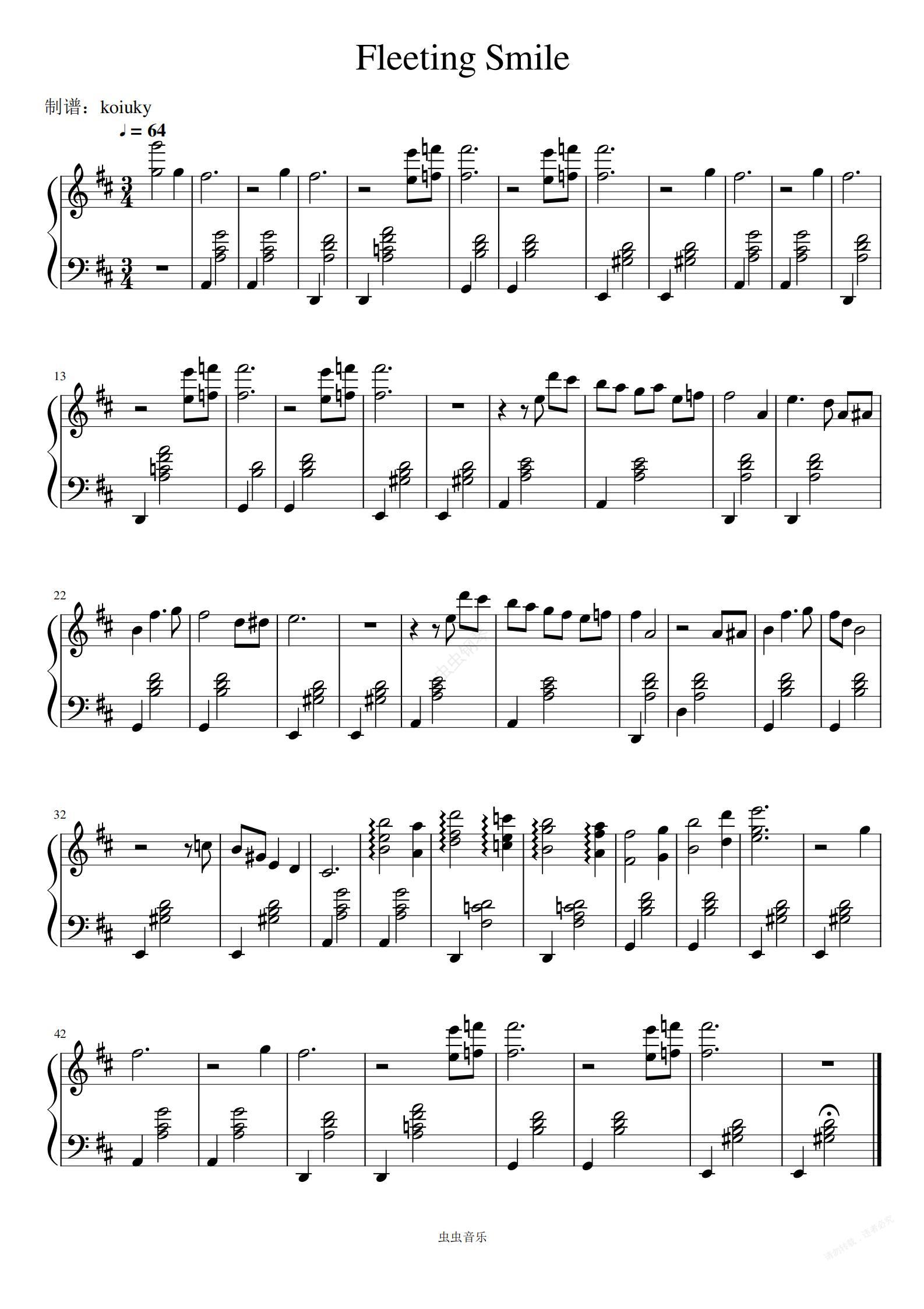 钢琴谱:Fleeting Smile 钢琴独奏谱