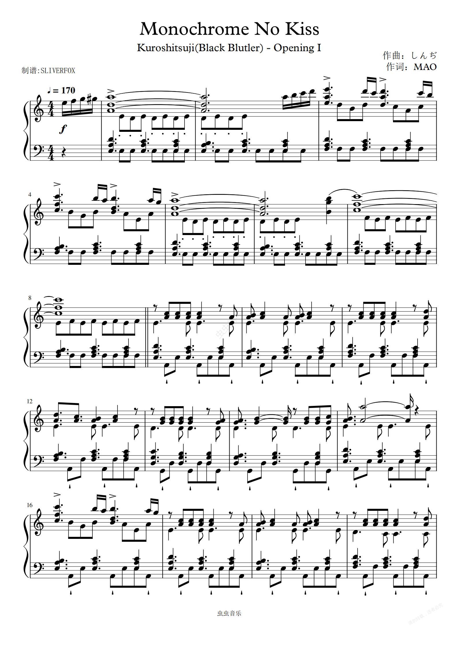 钢琴谱:Monochrome No Kiss 《黑执事》片头燃曲 黑白之吻