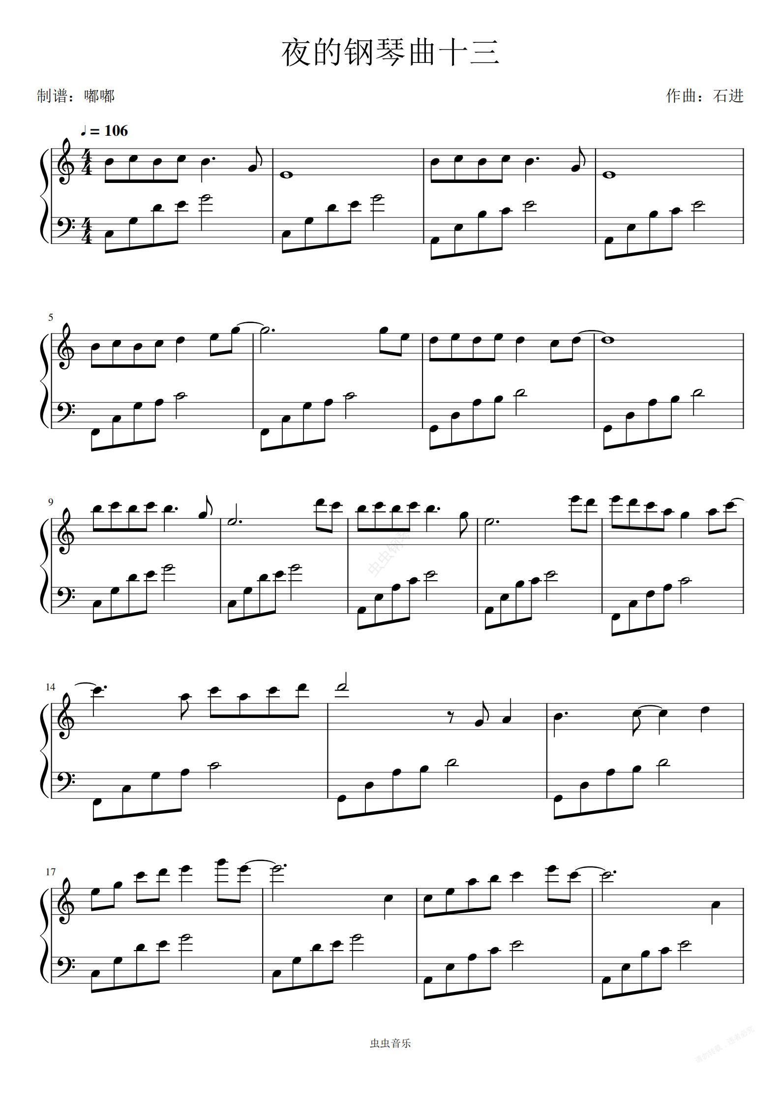 钢琴谱:夜的钢琴曲十三(完美C调版)