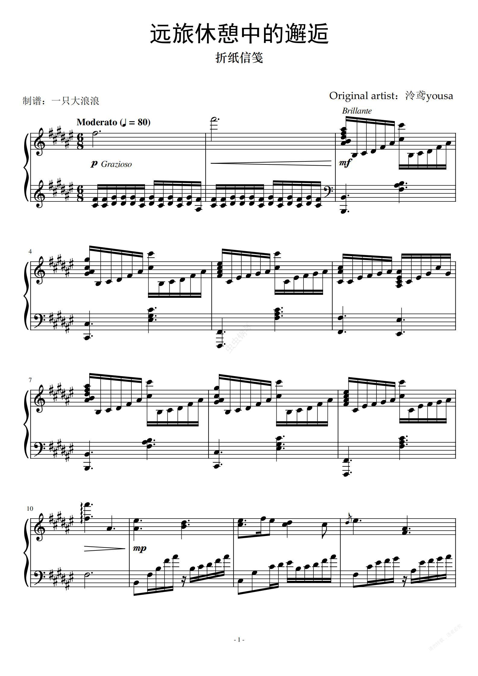 钢琴谱:远旅休憩中的邂逅 高难独奏版