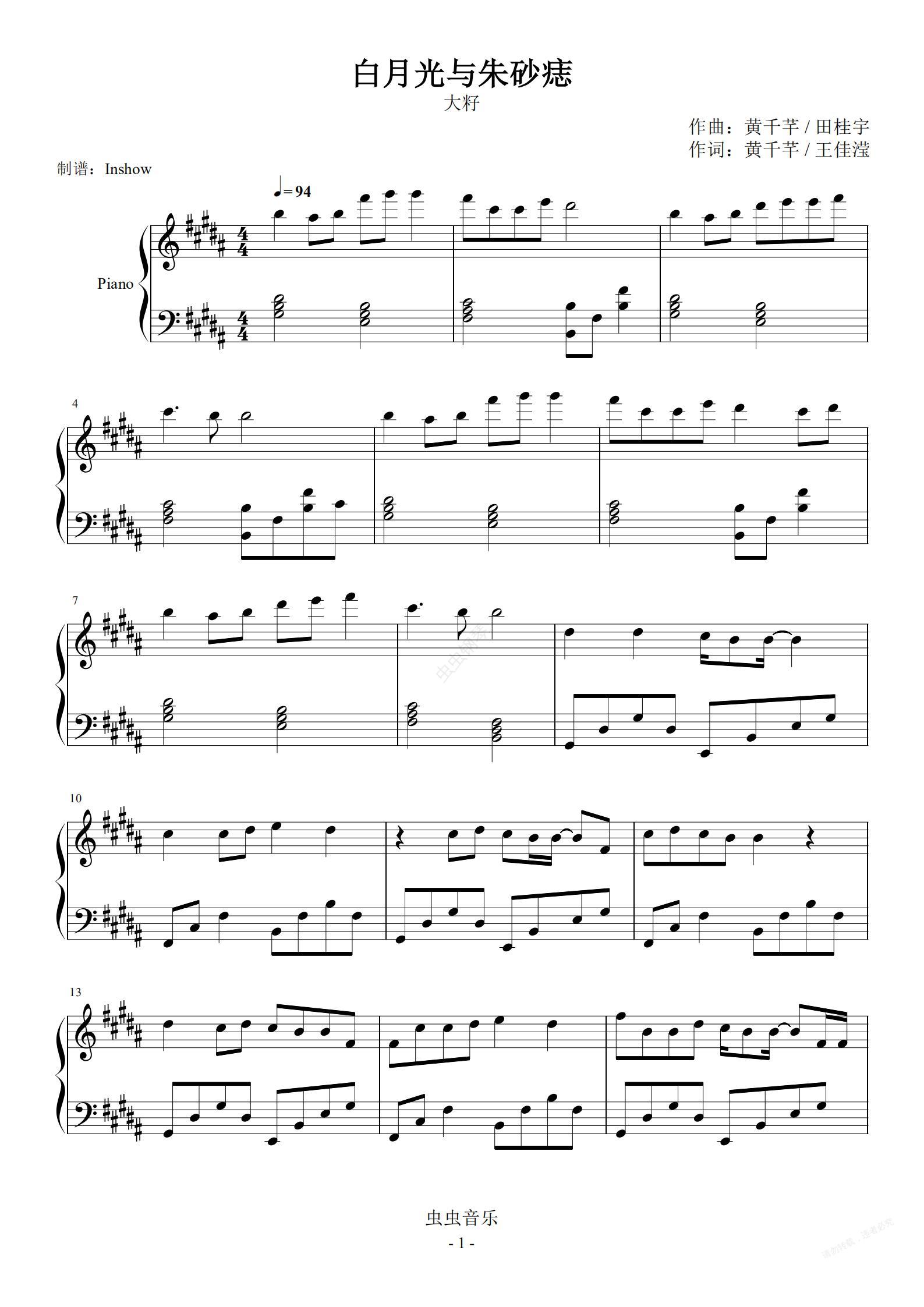 钢琴谱:白月光与朱砂痣【独奏】- 大籽 -