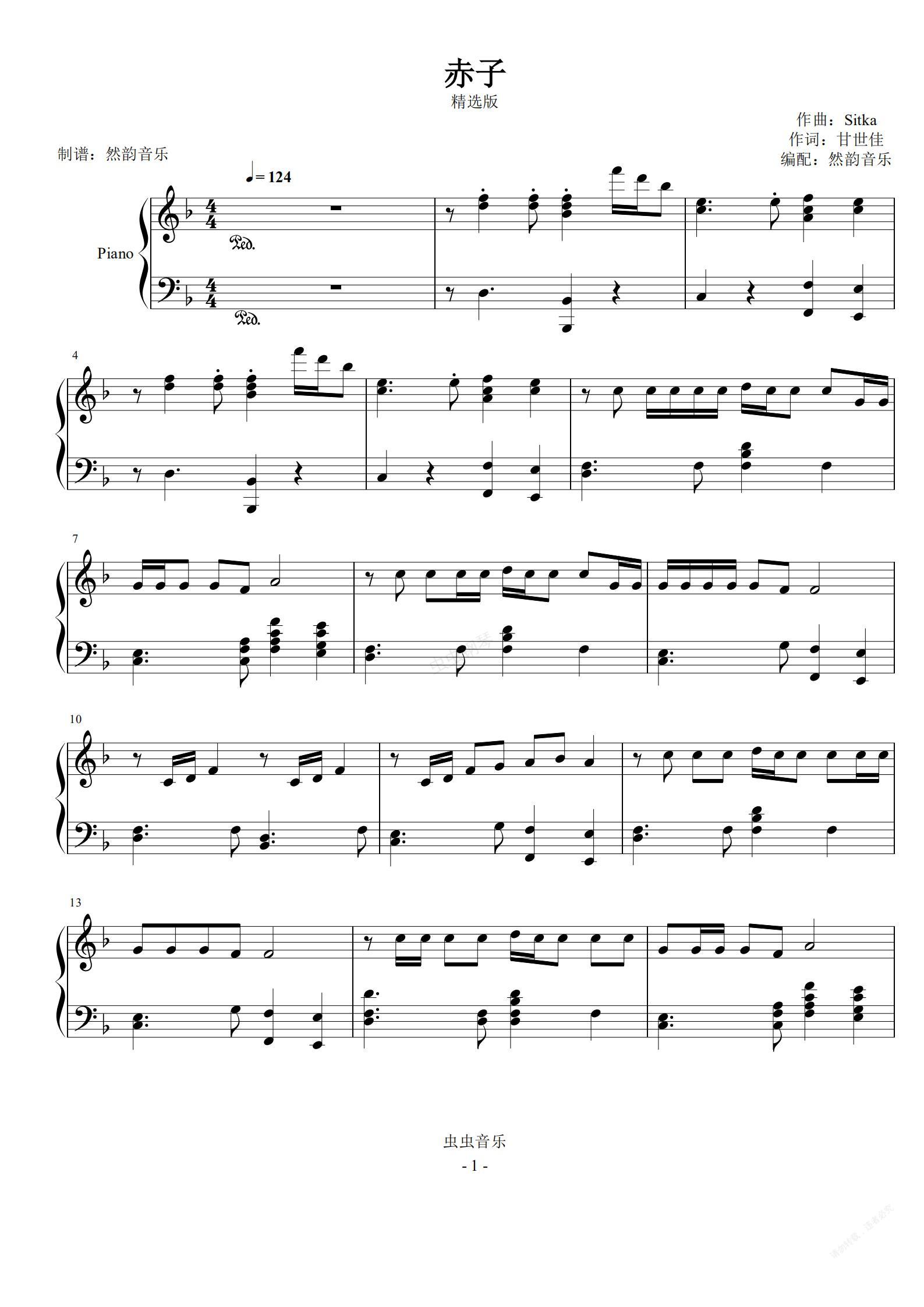 钢琴谱:【然韵音乐】赤子-创造营2019    R1SE回忆录系列