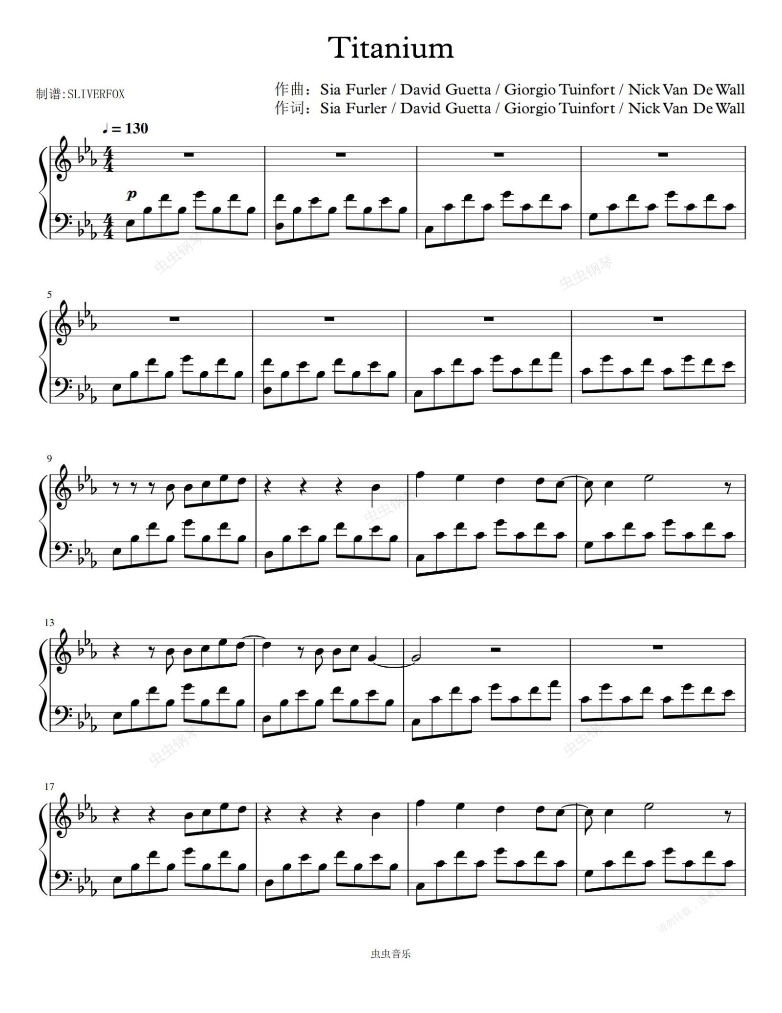 钢琴谱:Titanium  David Guetta  简易唯美完整版