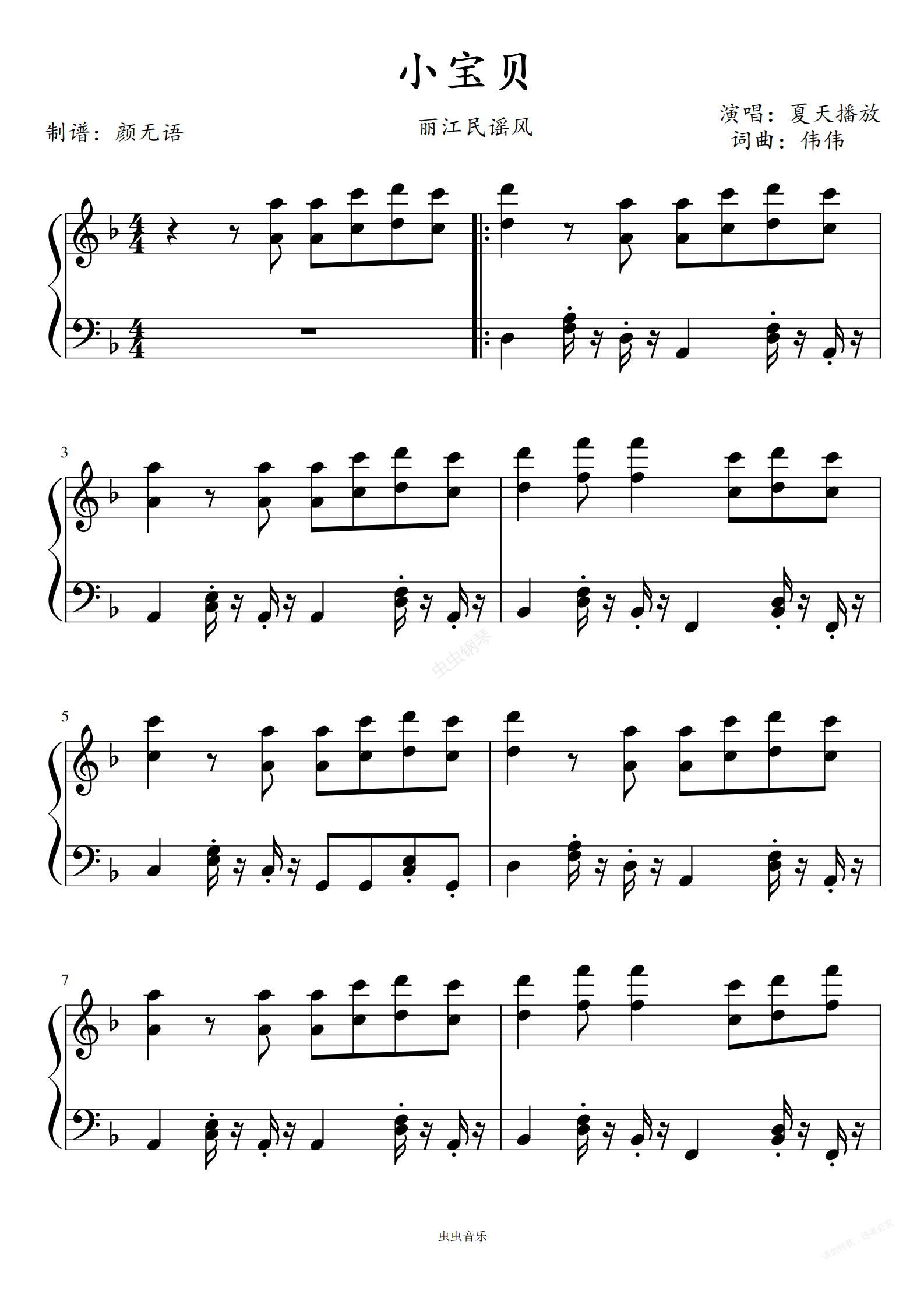 钢琴谱:小宝贝 F调 丽江民谣 满满的幸福感