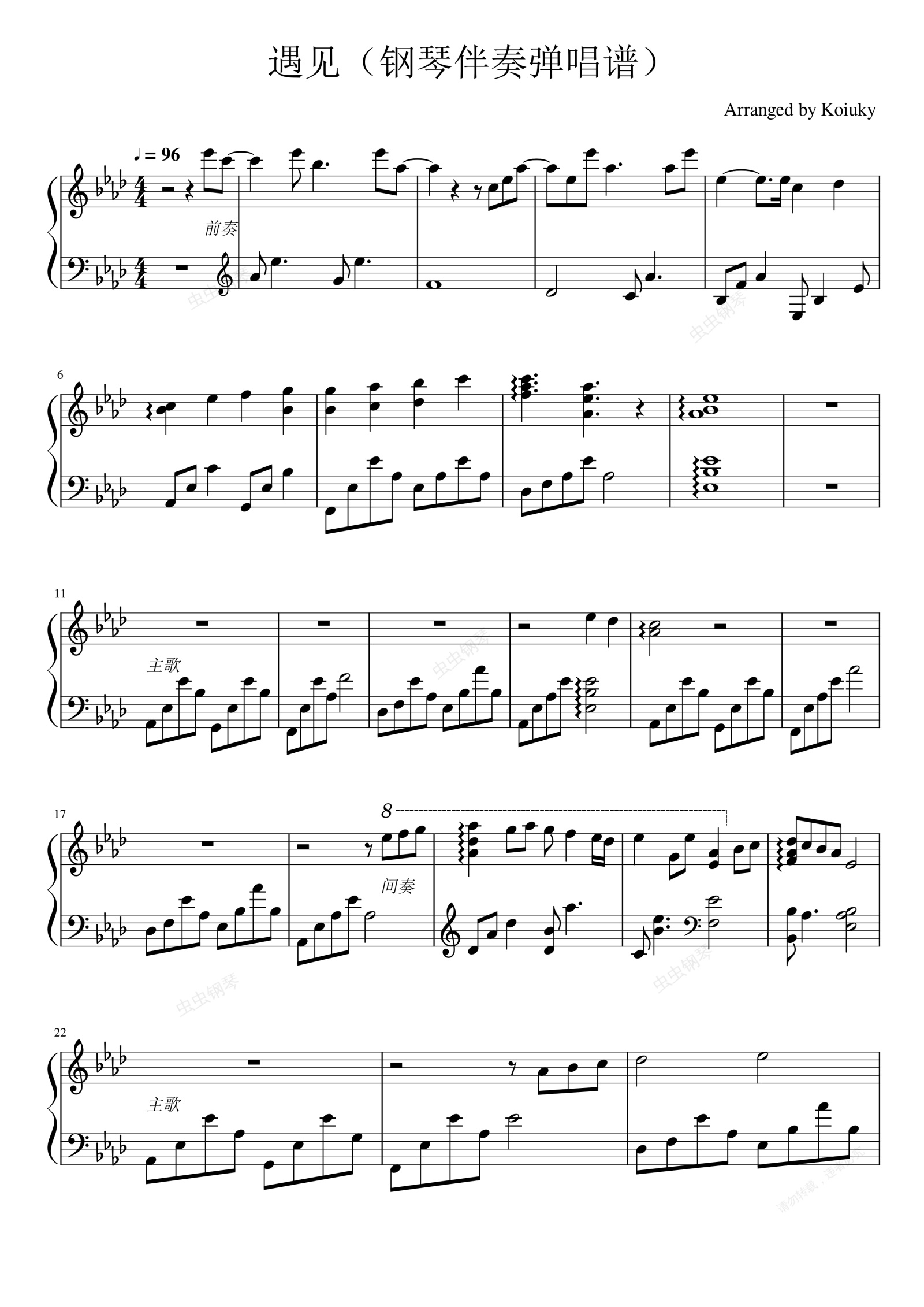 钢琴谱:遇见-孙燕姿 钢琴伴奏弹唱谱