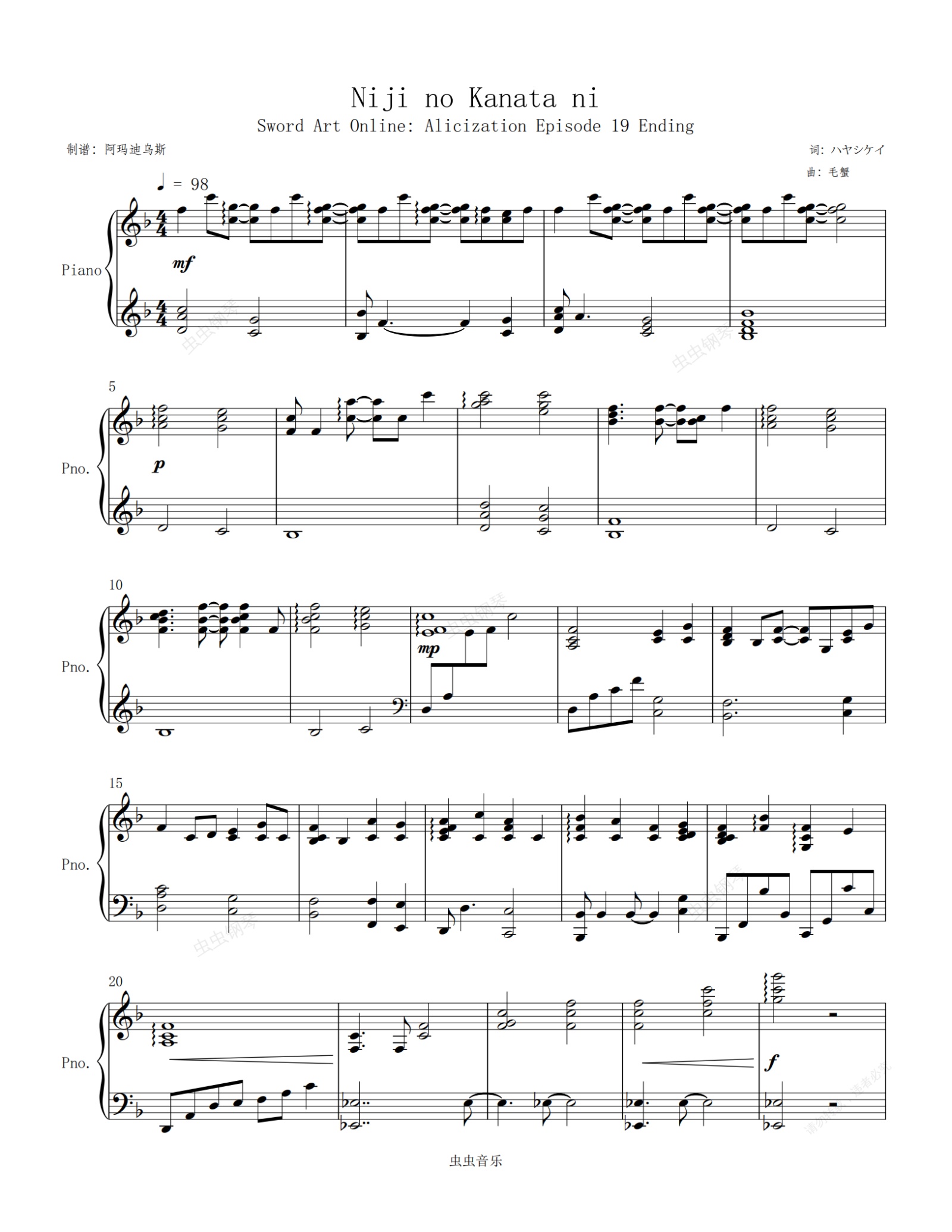 钢琴谱:刀剑神域 ED < 虹の彼方に > Niji no Kanata ni 原调高还原完整版本
