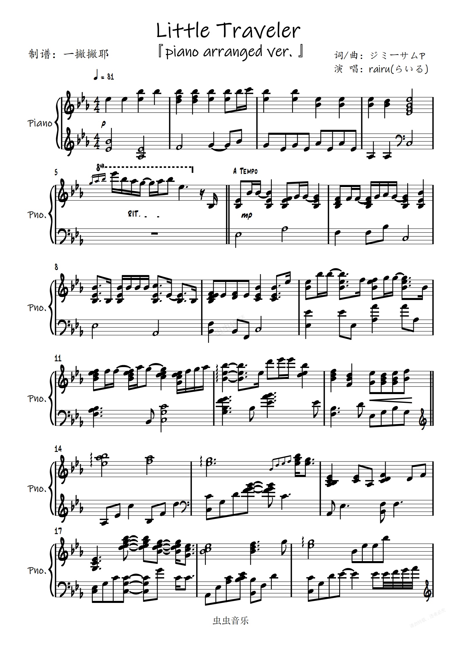 钢琴谱:Little Traveler【独奏谱】rairu「一撇撇耶」