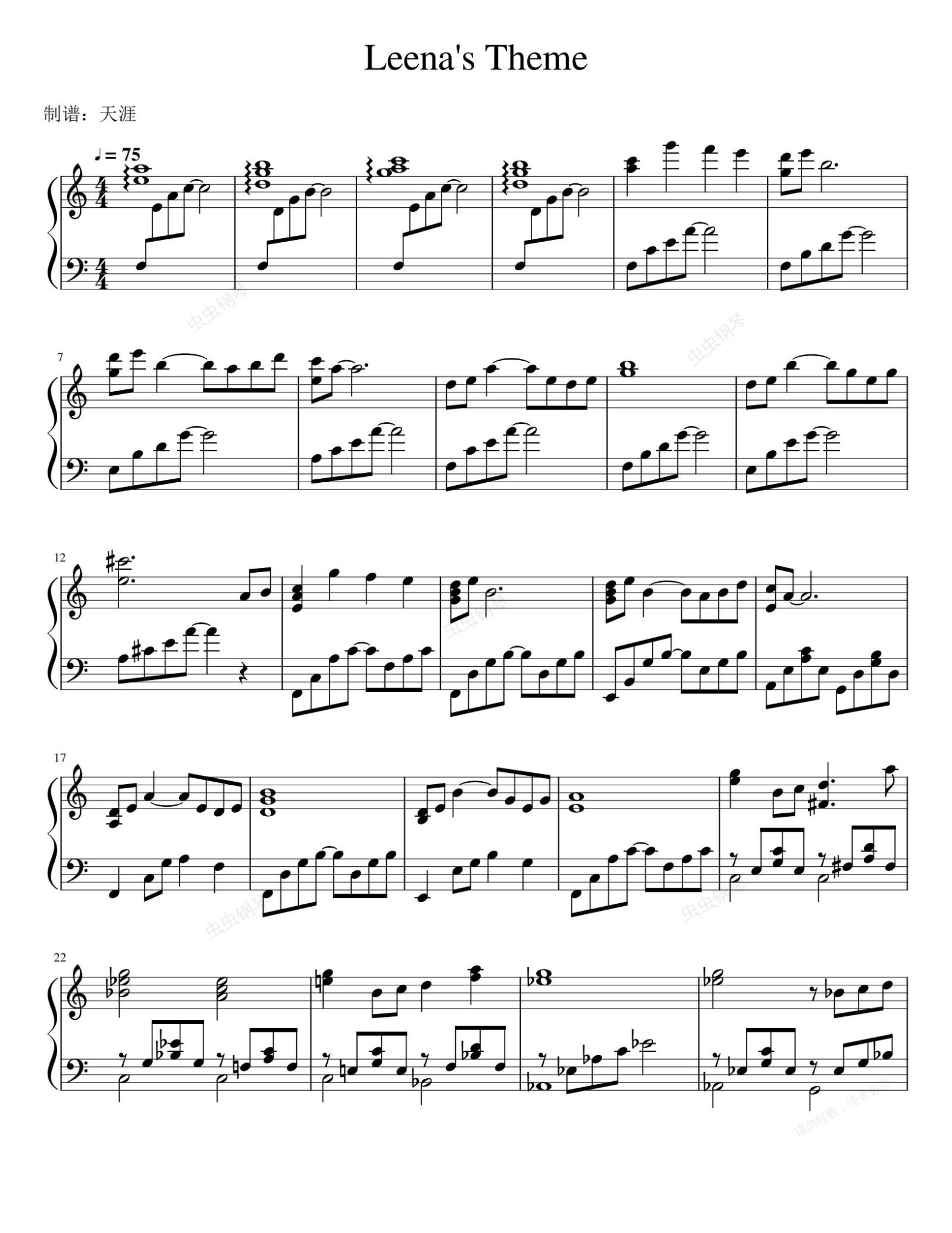 钢琴谱:Leena's Theme 最终幻想插曲