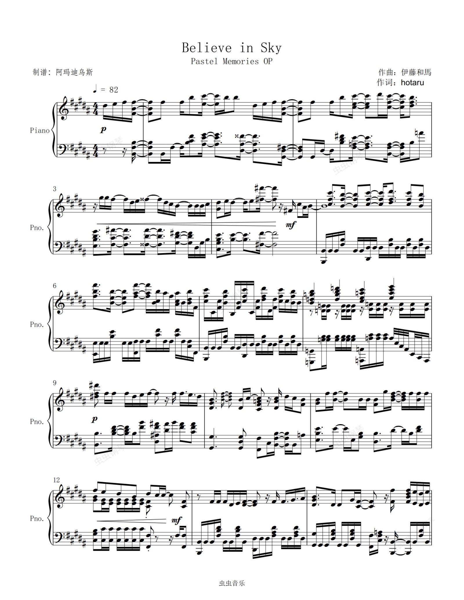 钢琴谱:粉彩回忆 OP < Believe in Sky > 原调高还原完整版本