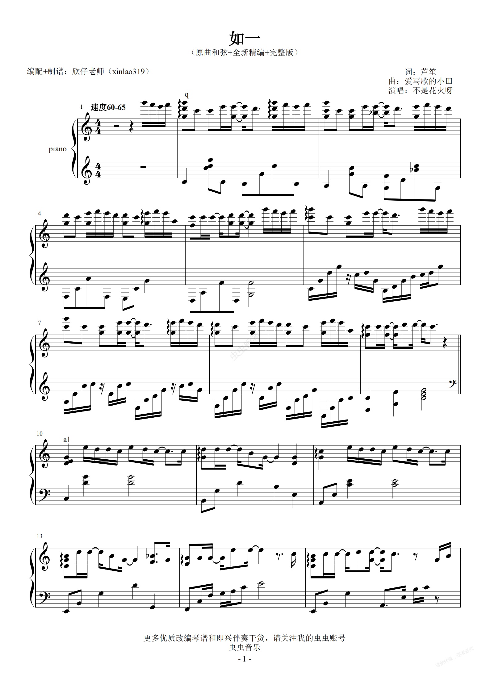钢琴谱:不是花火呀-C-《如一》(原曲和声+全新精编+完整版)