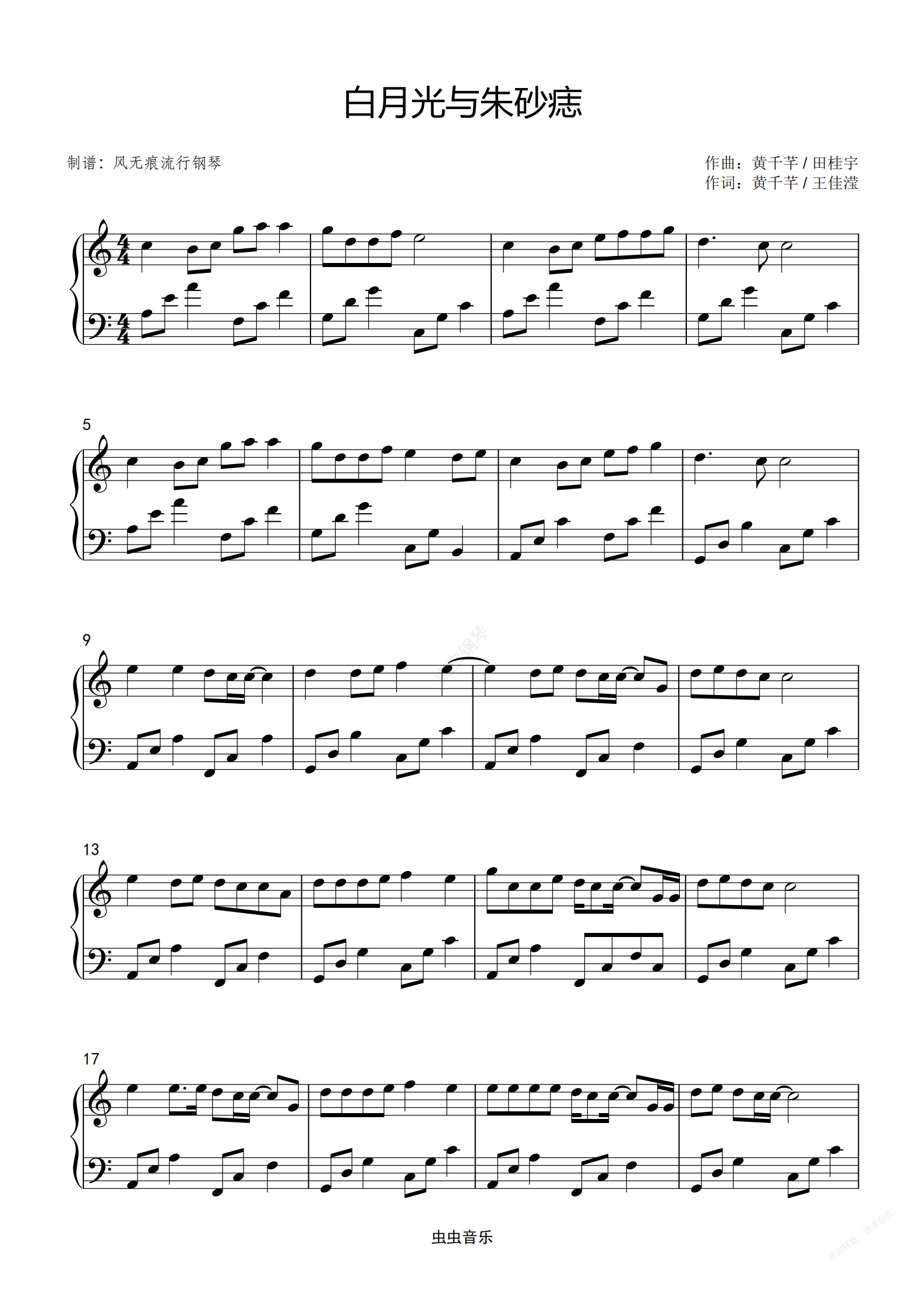 钢琴谱:白月光于朱砂痣-大耔〖简易动听〗