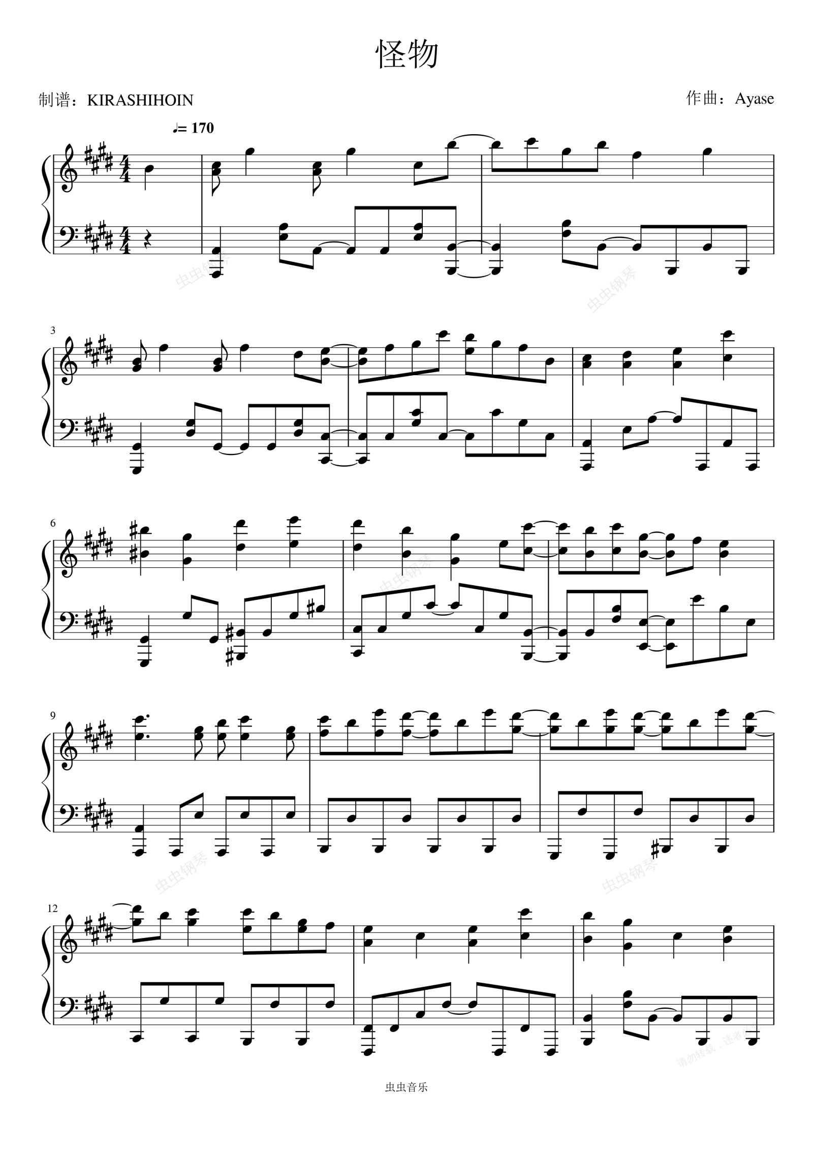 钢琴谱:怪物(《动物狂想曲/BEASTARS 第二季》TV动画片头曲)